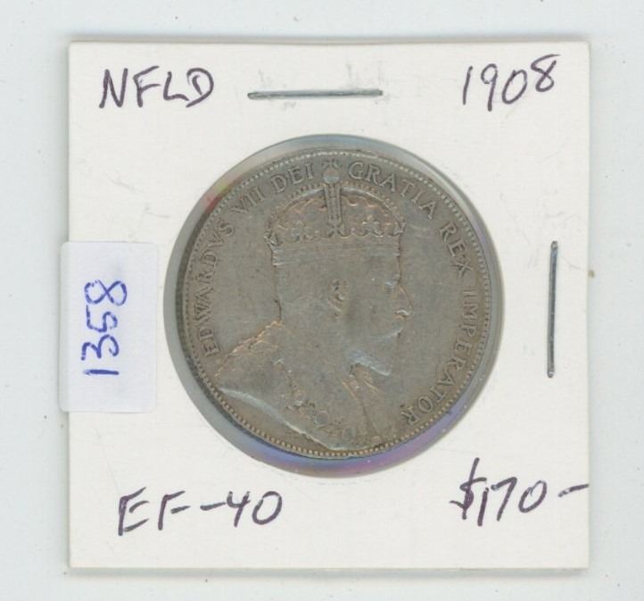 Newfoundland. 1908 Silver 50 Cents. EF-40. High Grade for this. Nice.