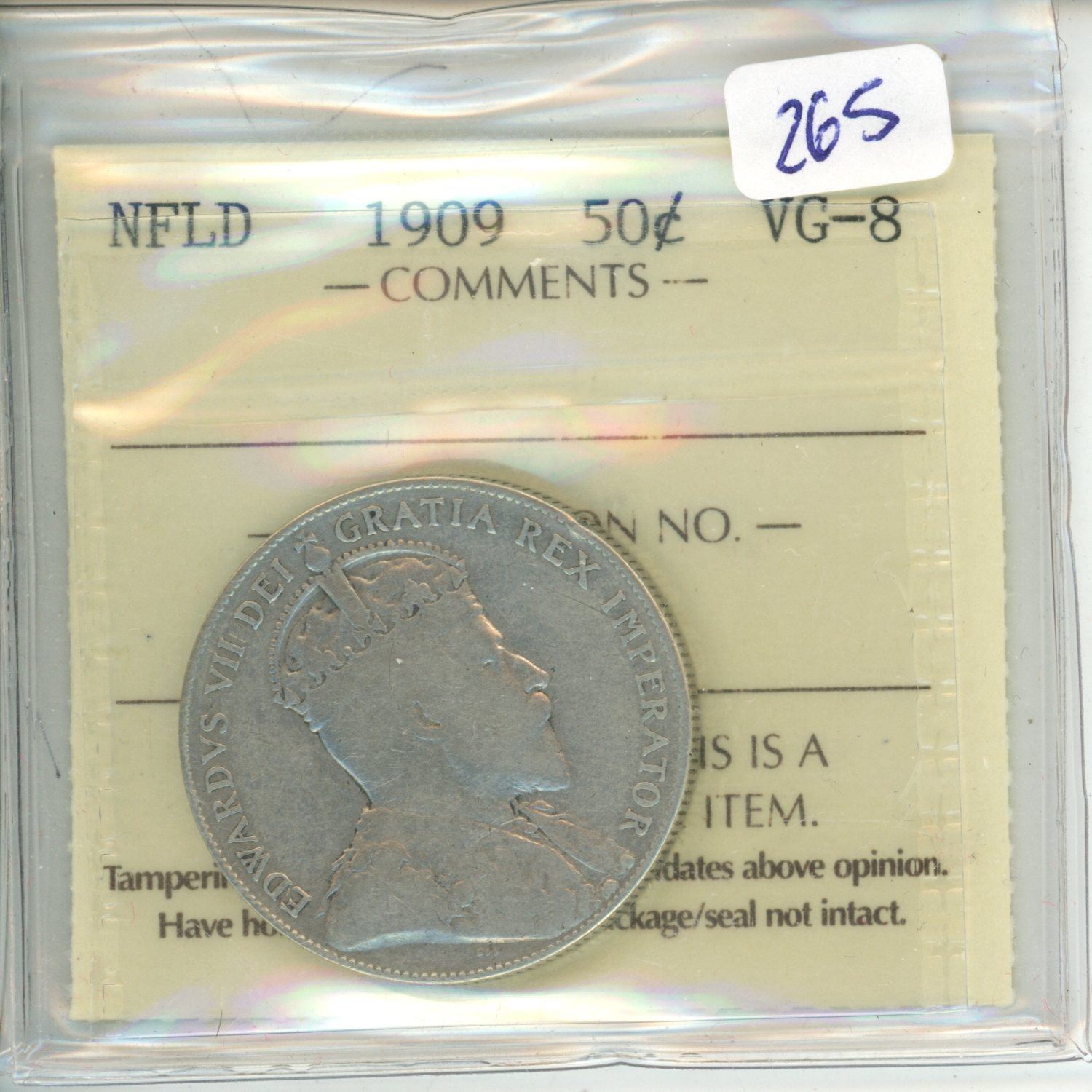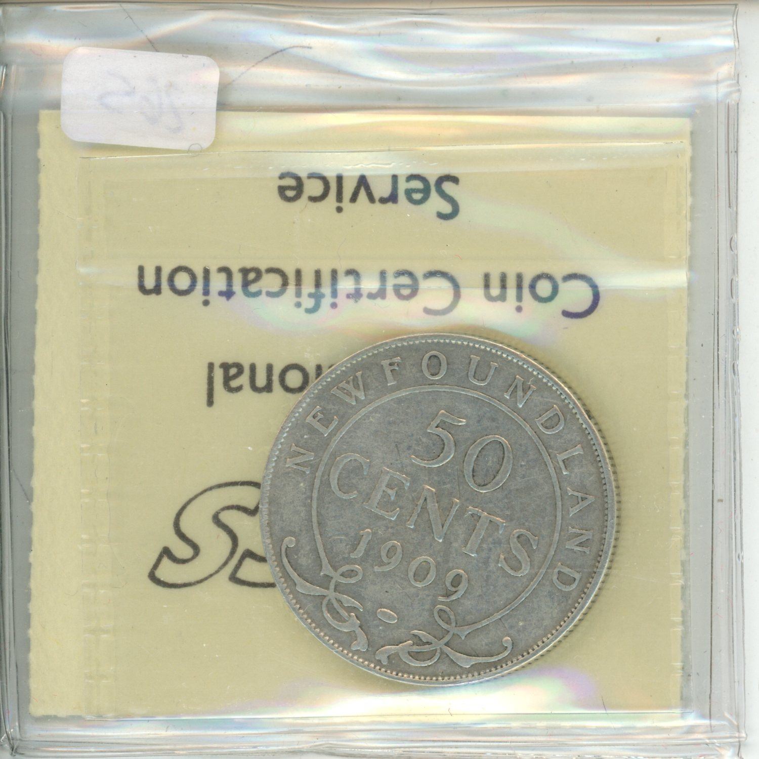 Newfoundland 1909 Silver 50 Cents. ICCS certified & graded VG-8.