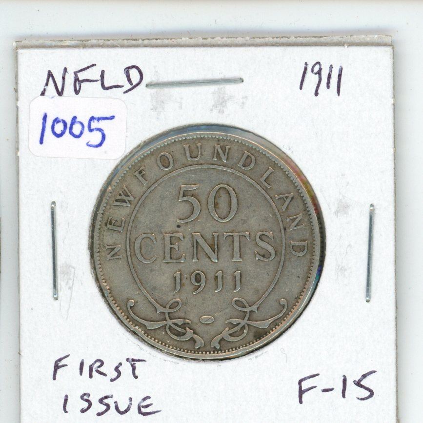 Newfoundland. 1911 Silver 50 Cents. The first 50 Cents issued for King George V. F-15.