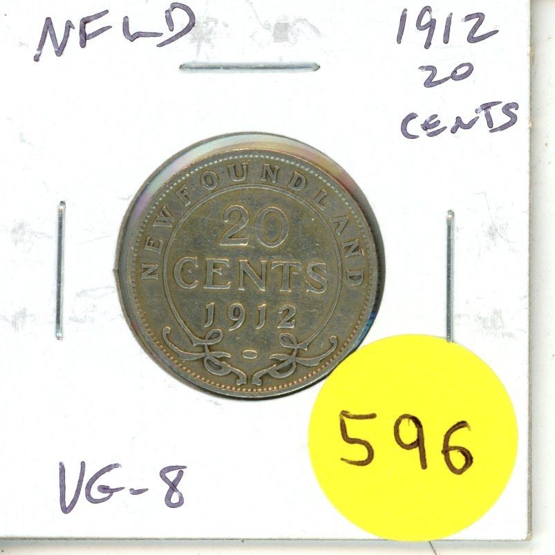 Newfoundland 1912 Silver 20 Cents. The last 20 Cents issued. VG-8.