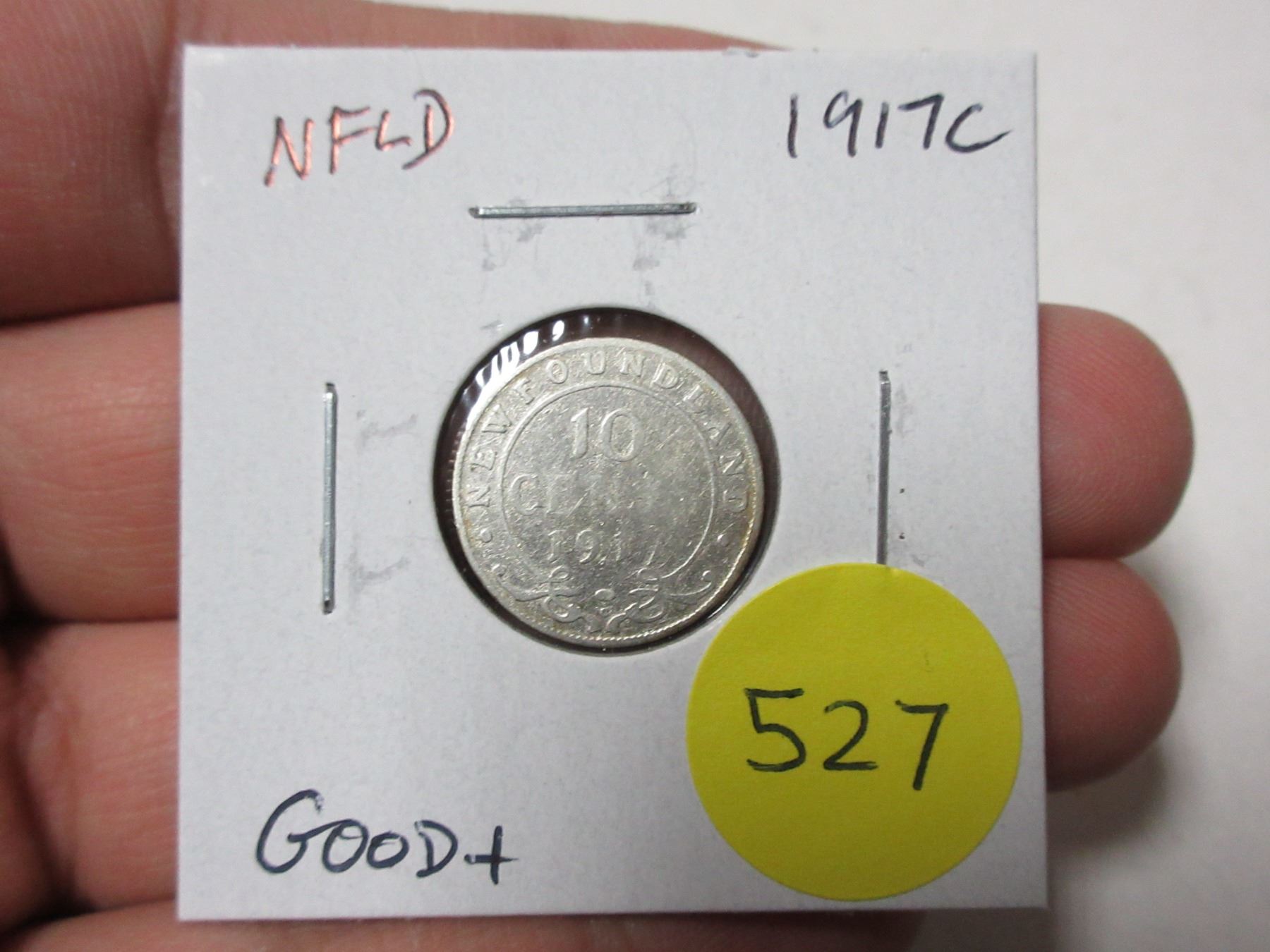 Newfoundland. 1917c Silver 10 Cents. Minted in Ottawa (C) because of World War I. Good6.