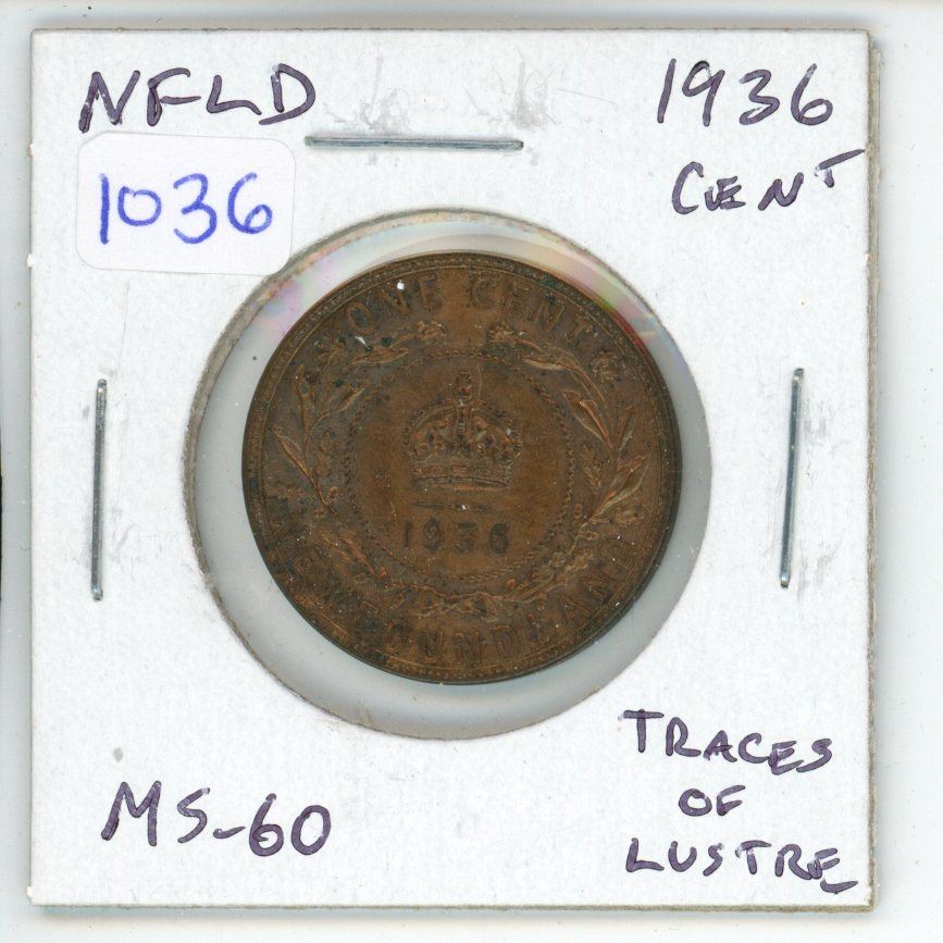 Newfoundland. 1936 Large Cent. Last issue of King George V. MS-60 with Traces of Lustre.
