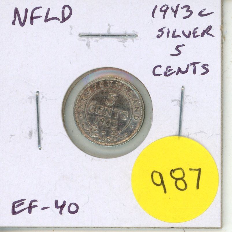 Newfoundland. 1943c Silver 5 Cents. EF-40.