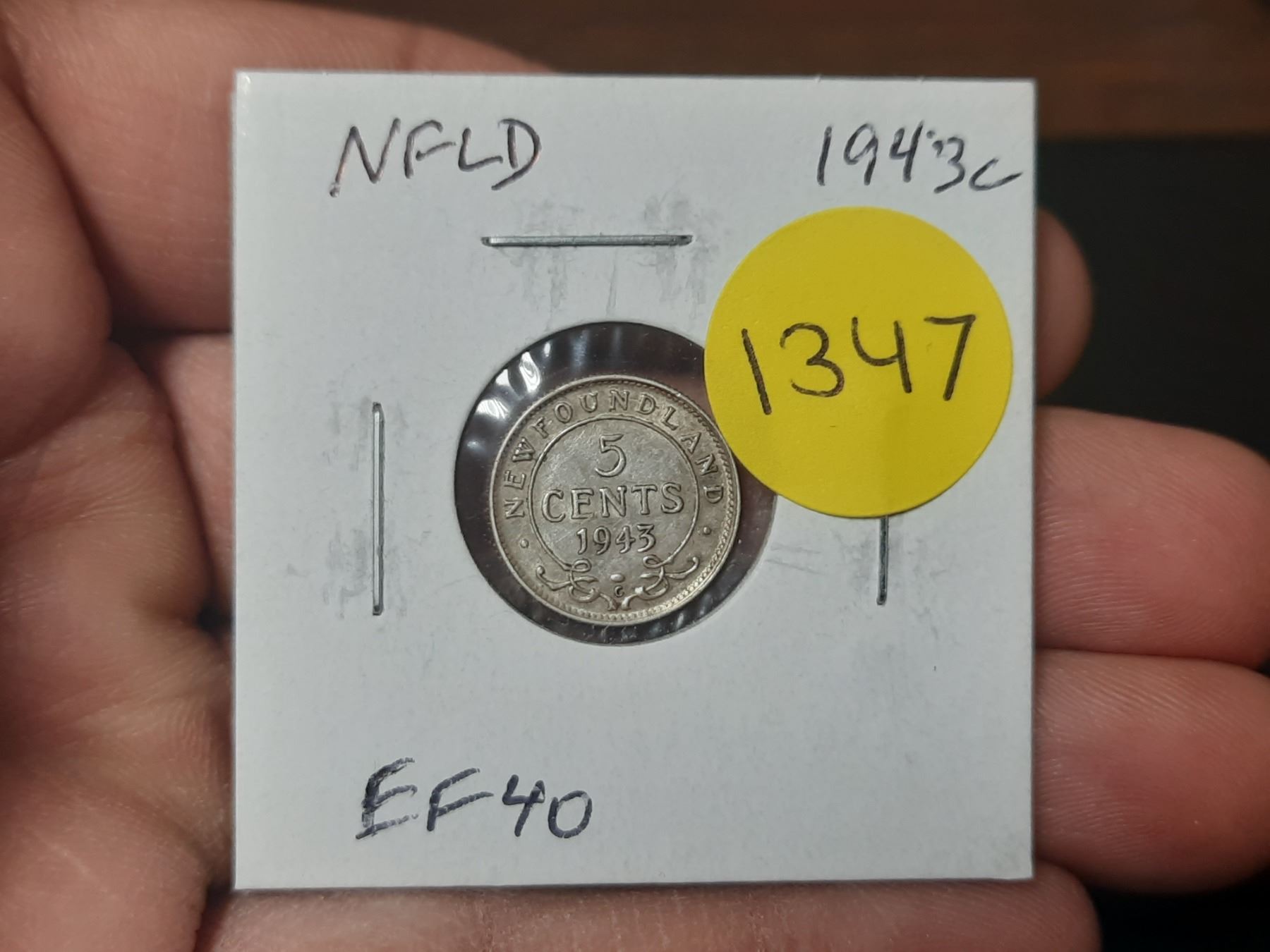 Newfoundland. 1943c Silver 5 Cents. World War II issue. EF40.