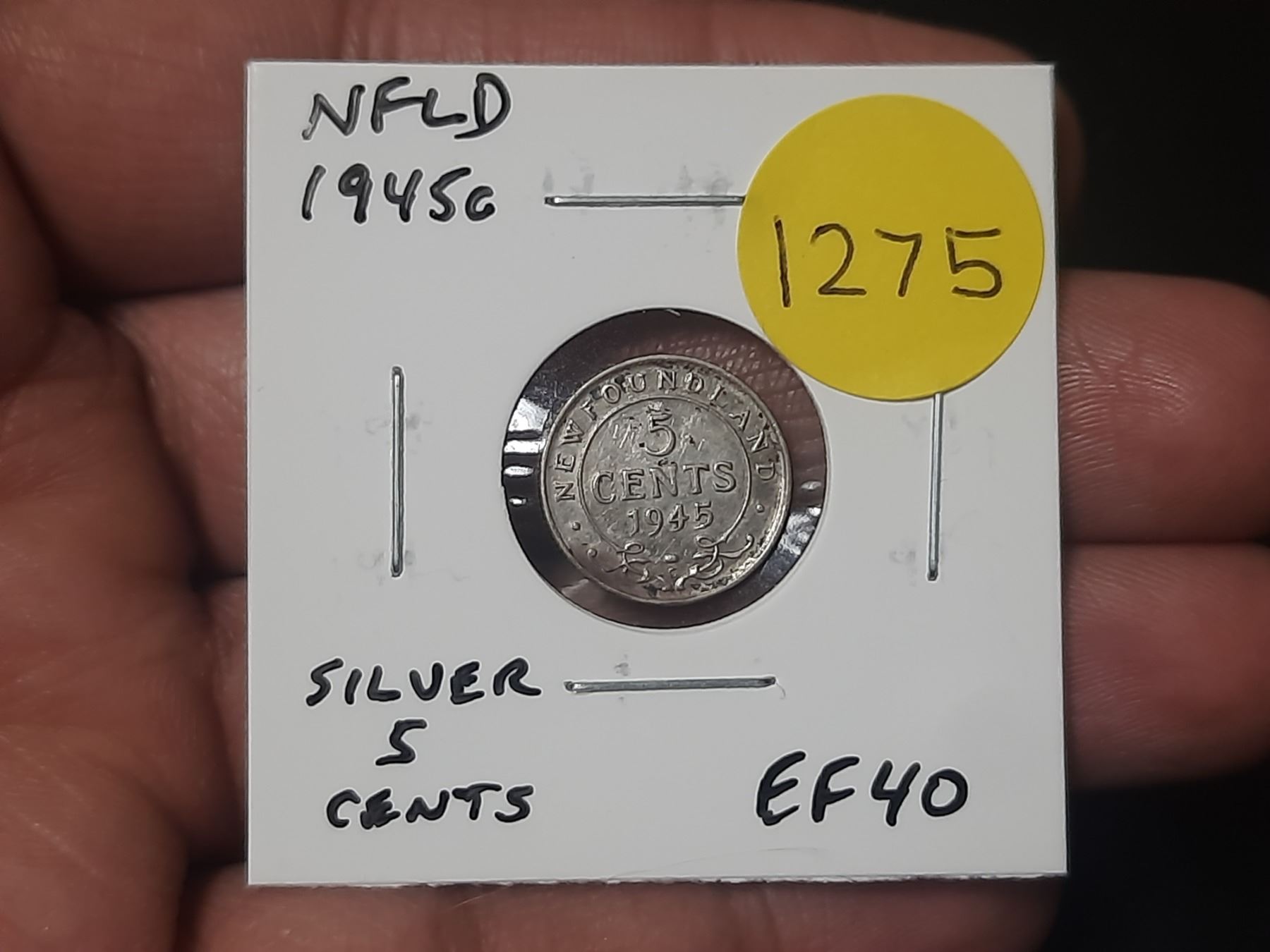 Newfoundland 1945c Silver 5 Cents. EF40.