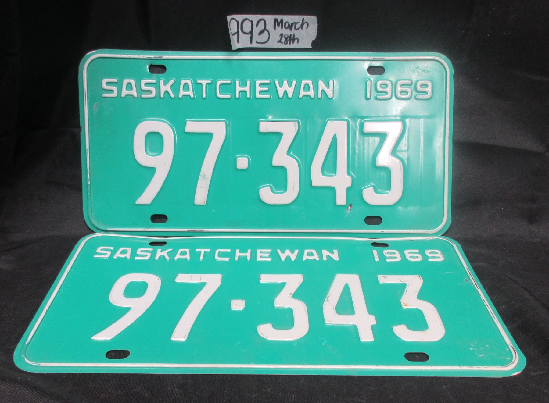Nice Matching 5 Digit 1969 Saskatchewan License Plates