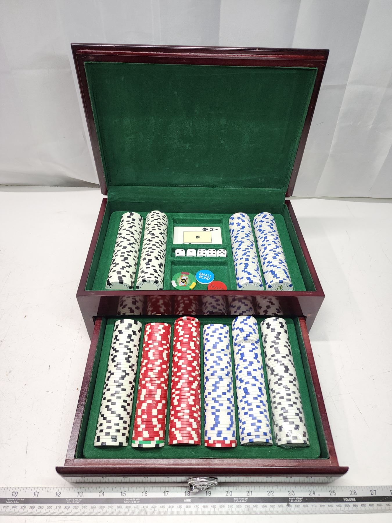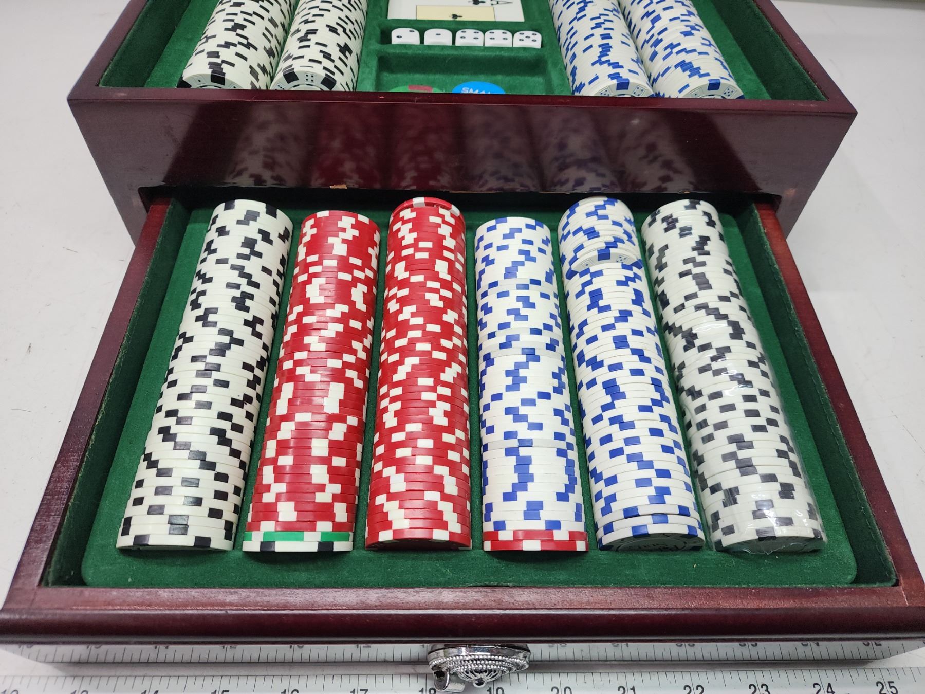 Nice Poker chips set, in wooden case - just need cards