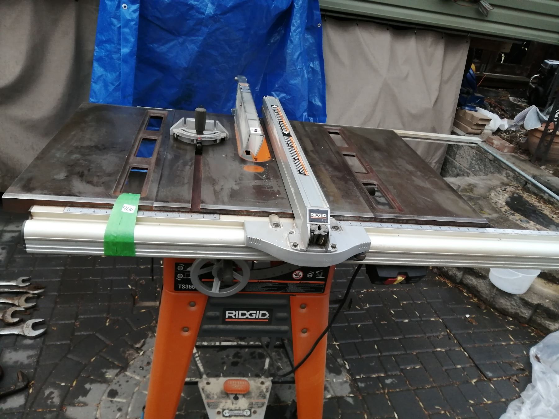 Nice Rigid 10” table saw on castors/solid cast iron table/with wrenches & mitre quage /safety shield