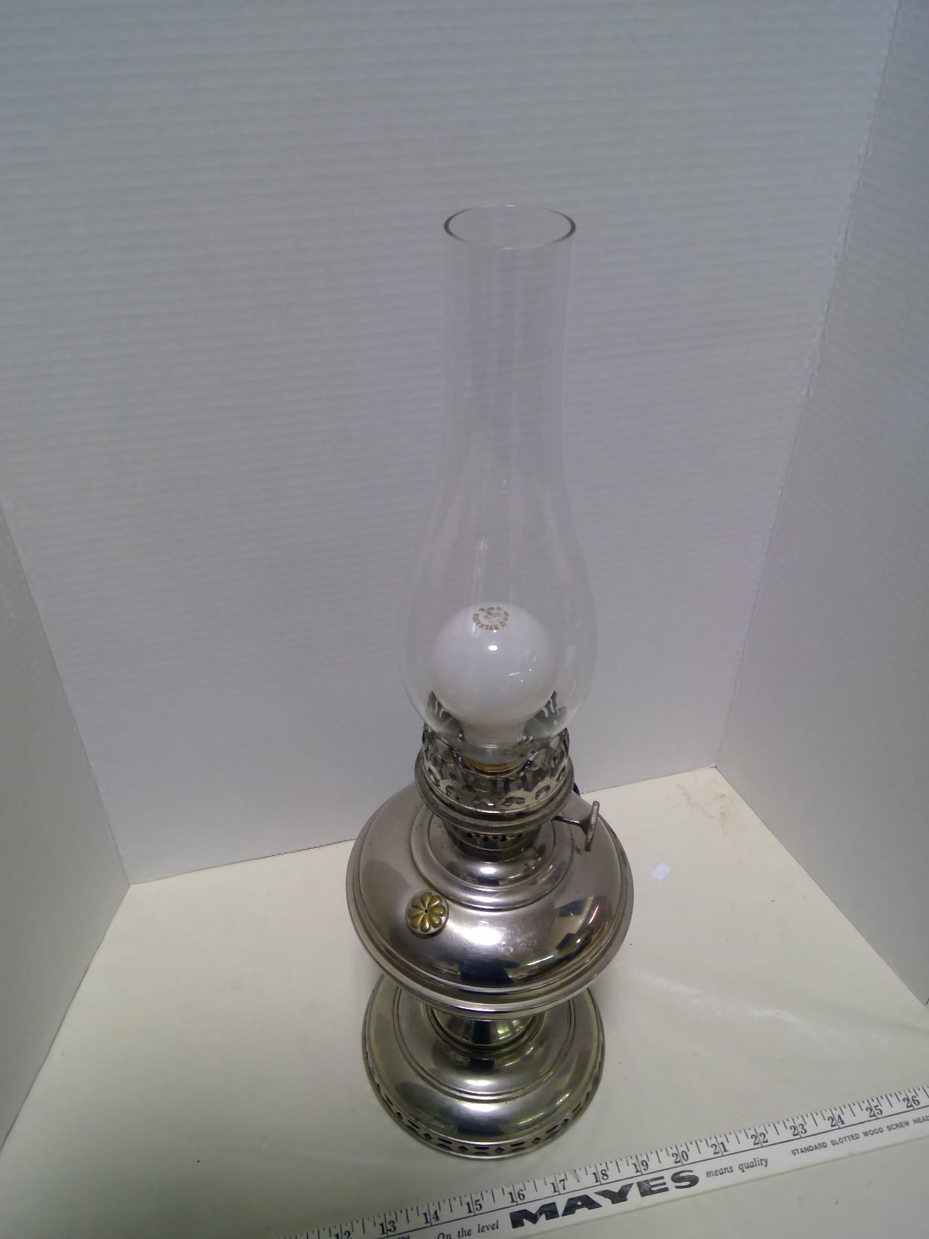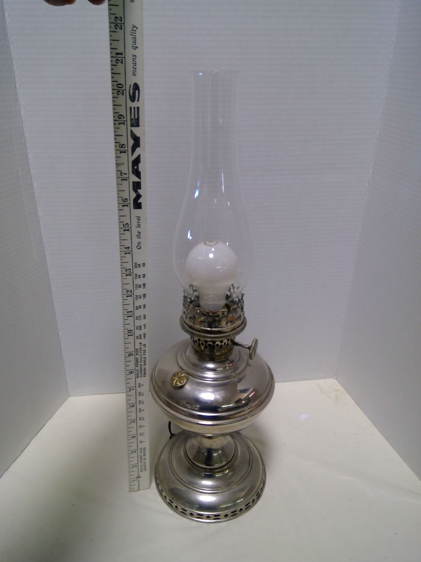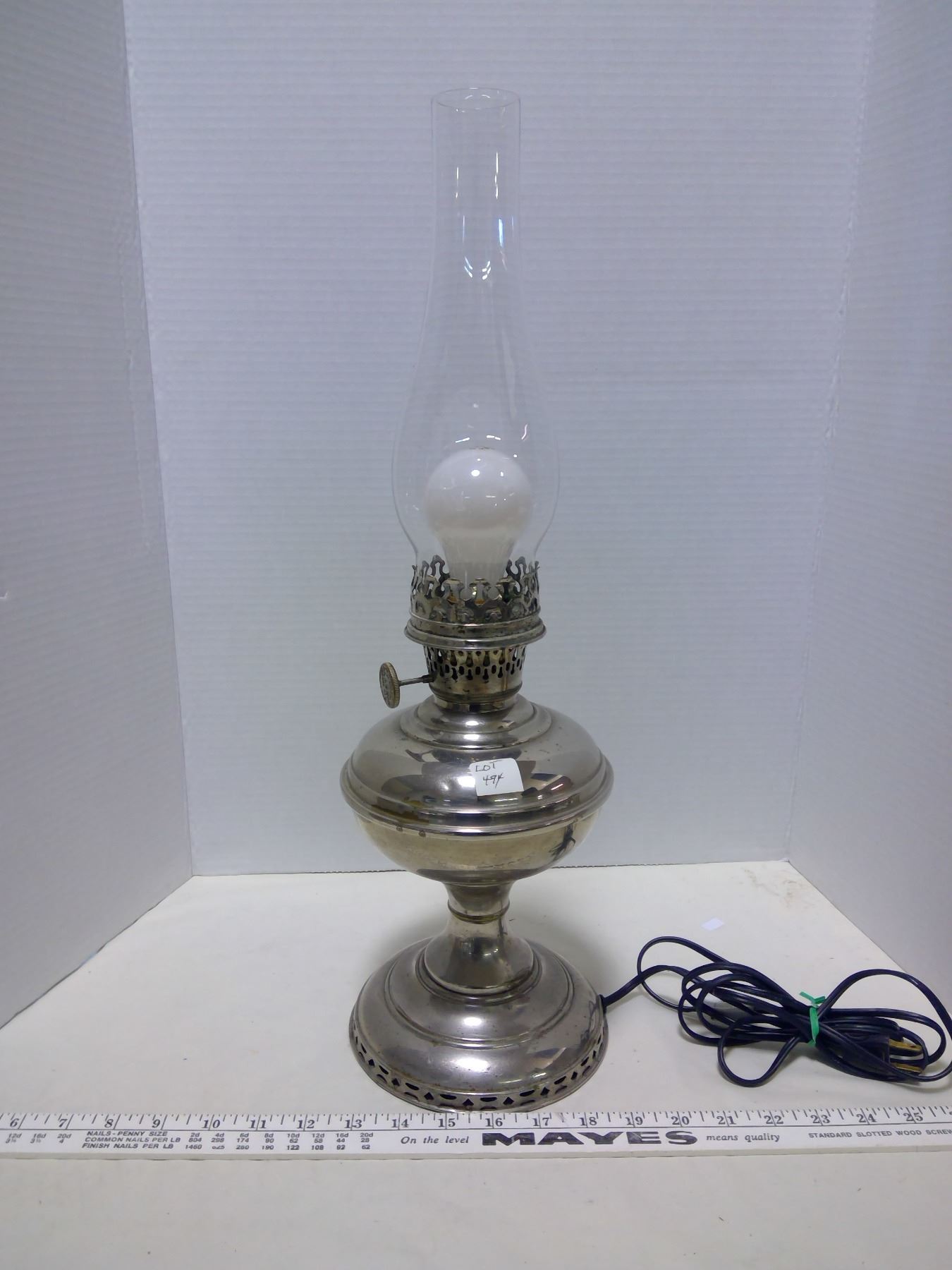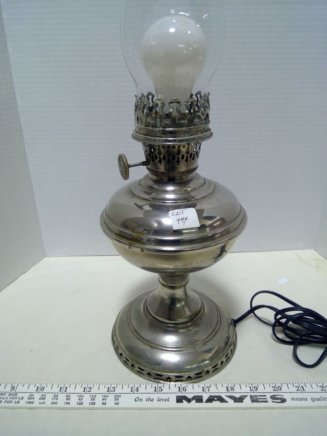Nickel Plated Aladdin Lamp & Glass Shade - Converted to Electricity (Working)