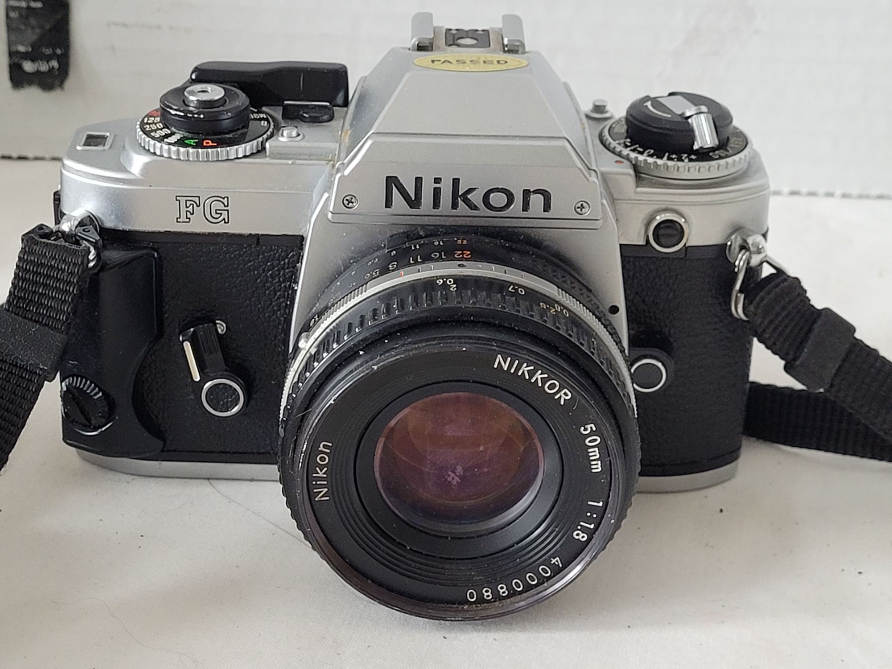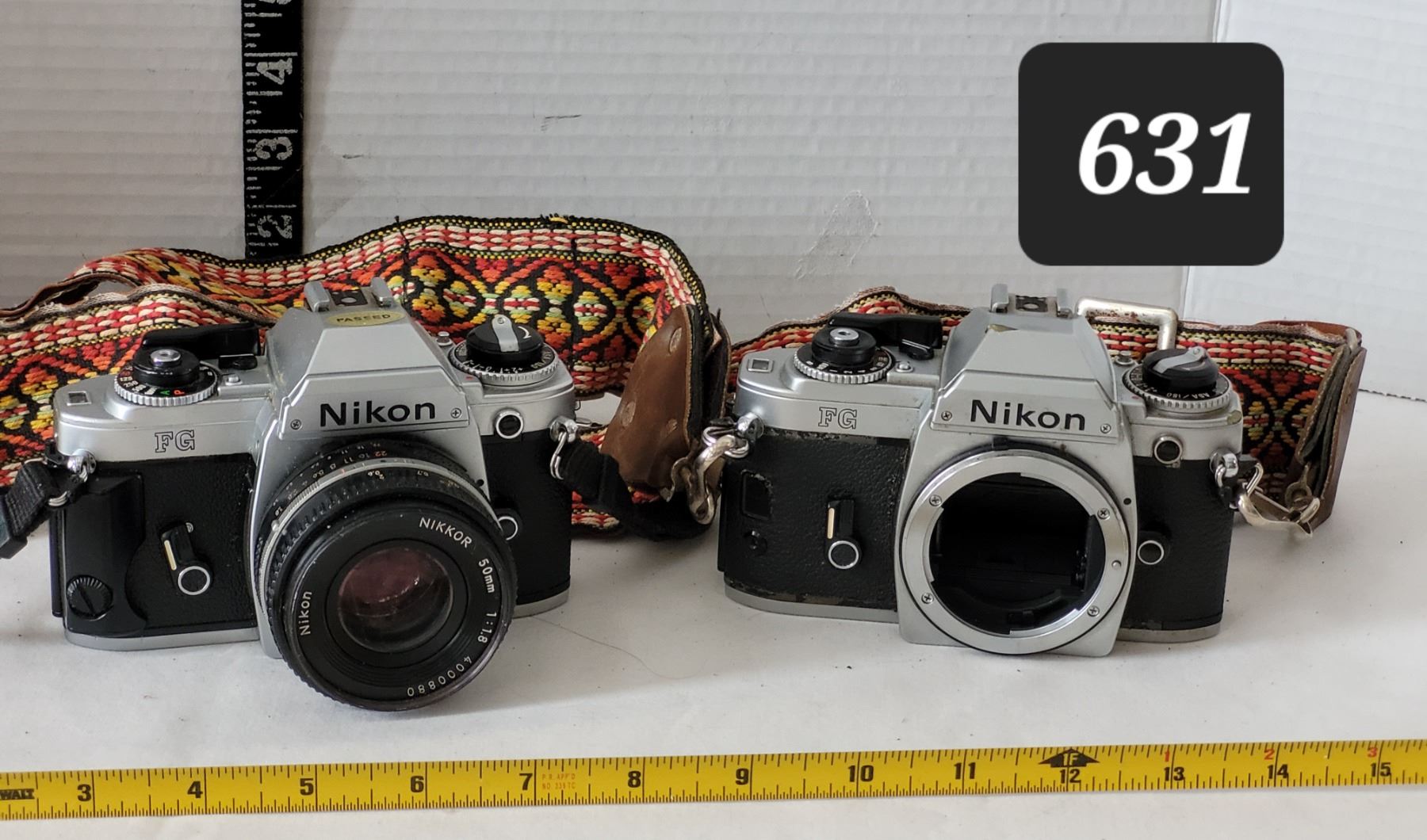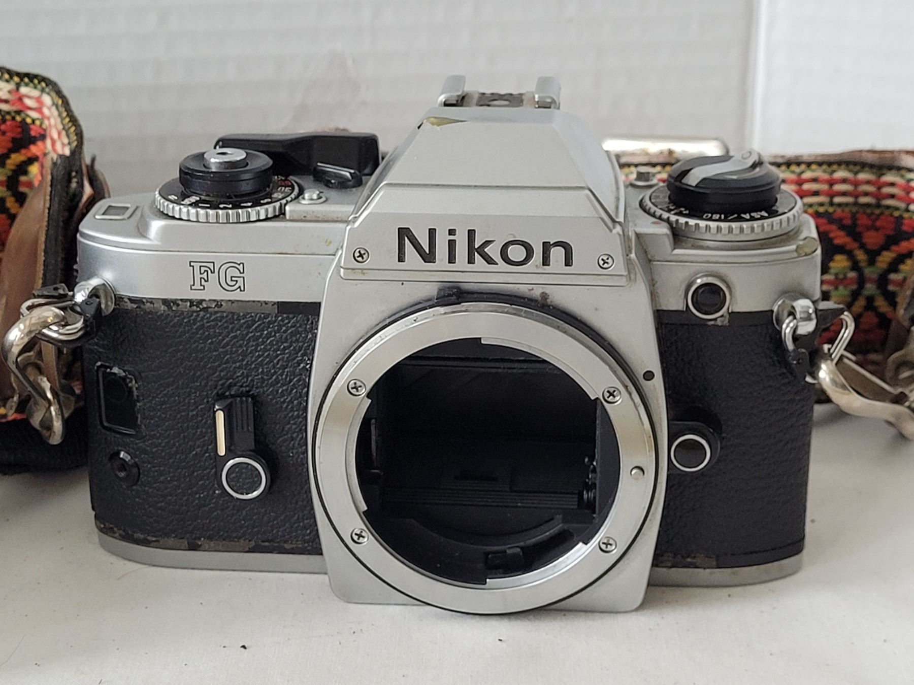 Nikon FG 35mm cameras. 1 complete, 1 missing lens.
