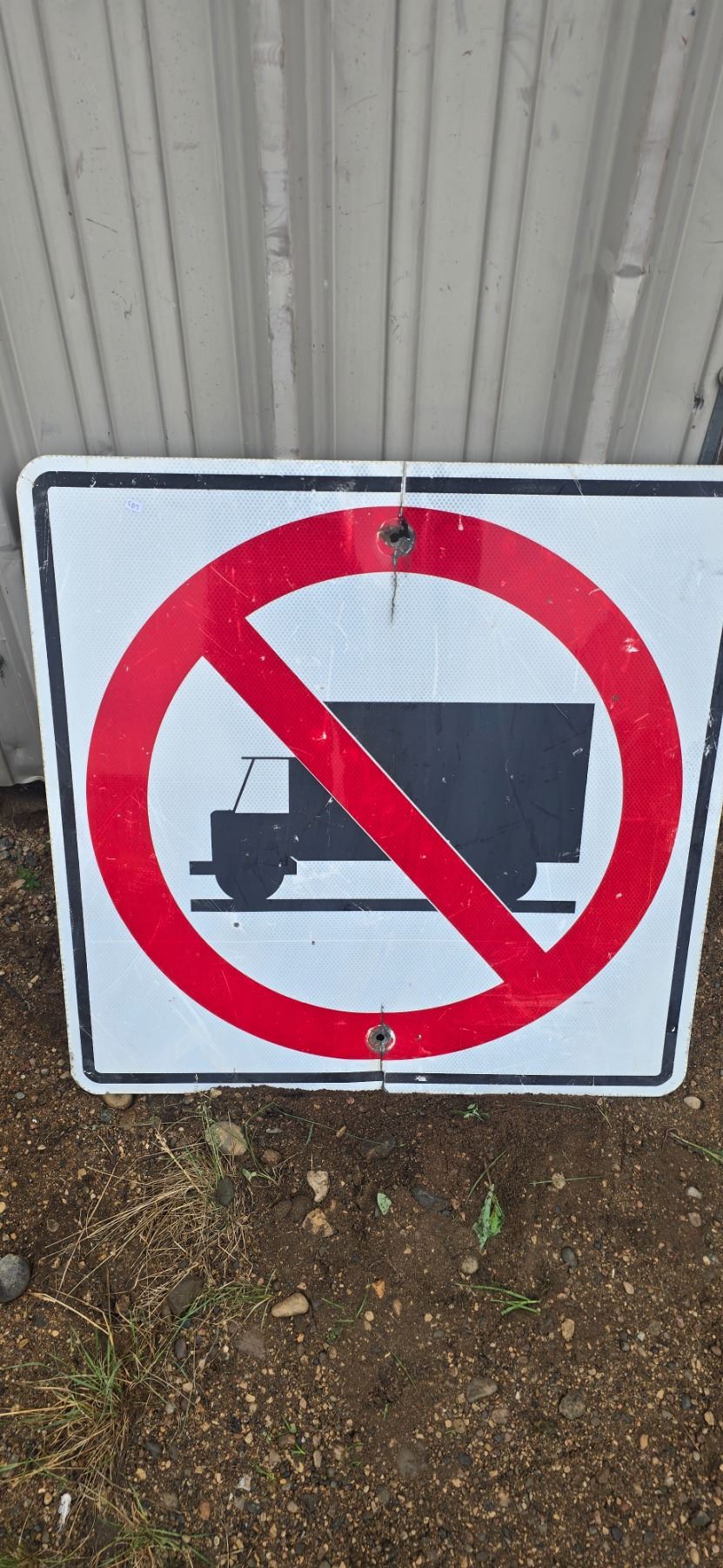 No trucks ahead highway sign 35-1/2"x35-1/2"