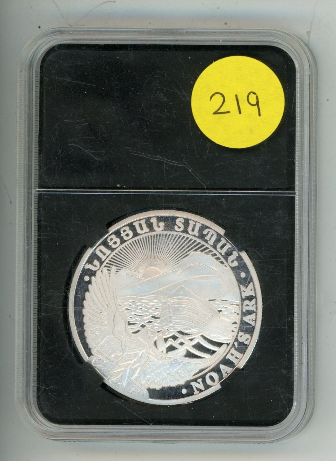 Noah’s Ark medal. Housed in a hard plastic holder. BU.