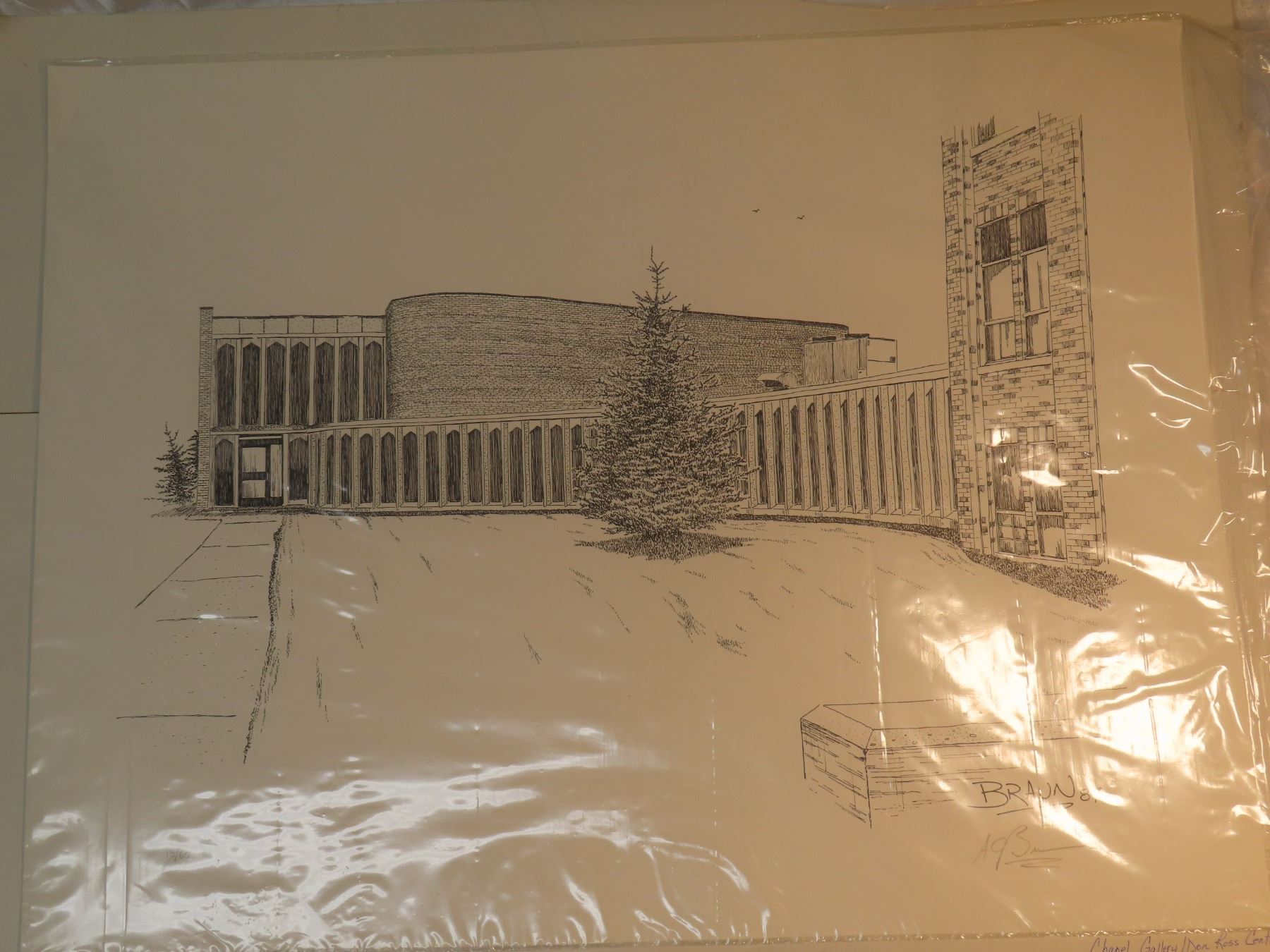 North battleford's city hall drawing (18"x24") and the chapel gallery drawing 22"x16.5"