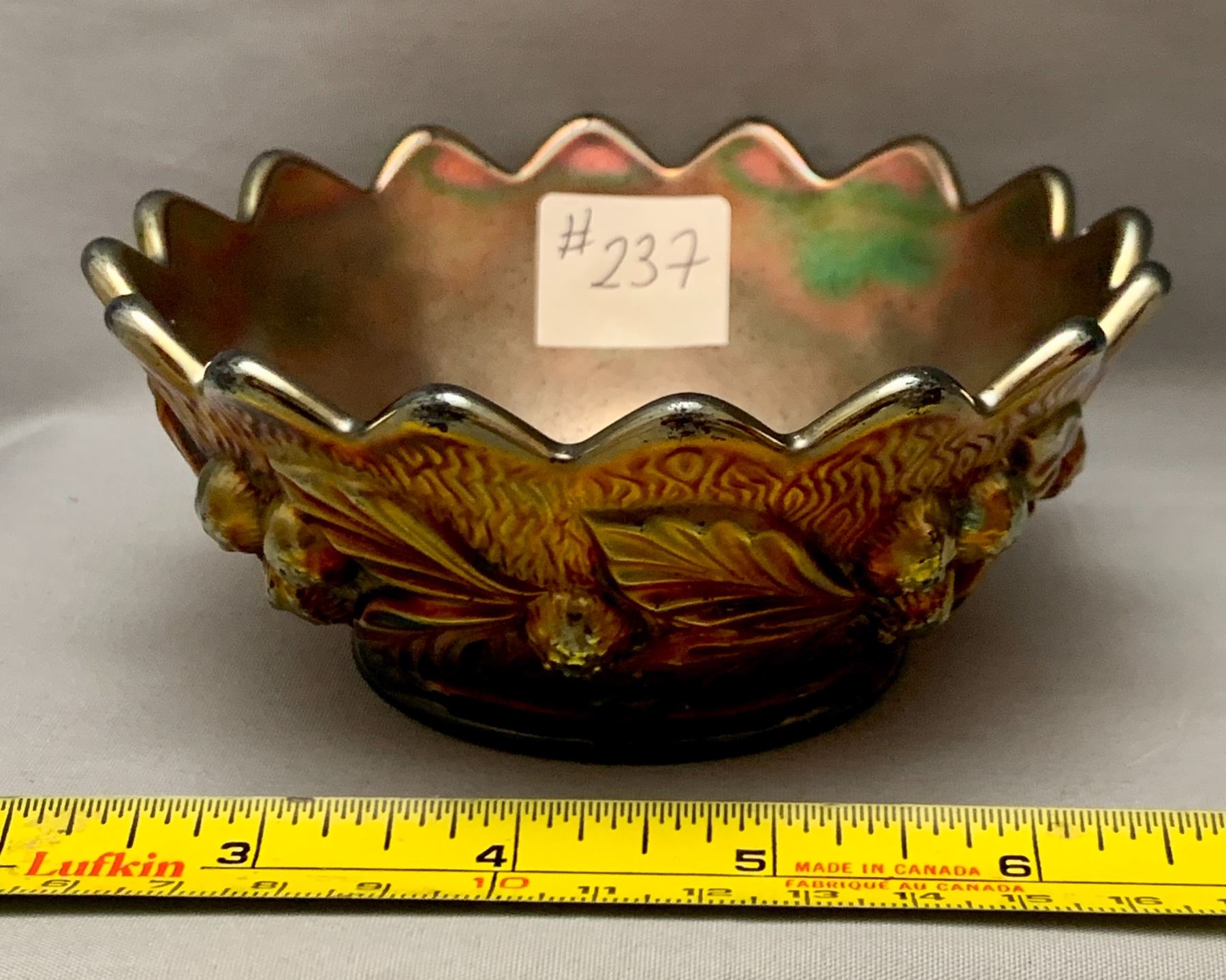 Northwood Amethyst Acorn Burrs Carnival Glass Round Sauce Bowl - Circa 1909