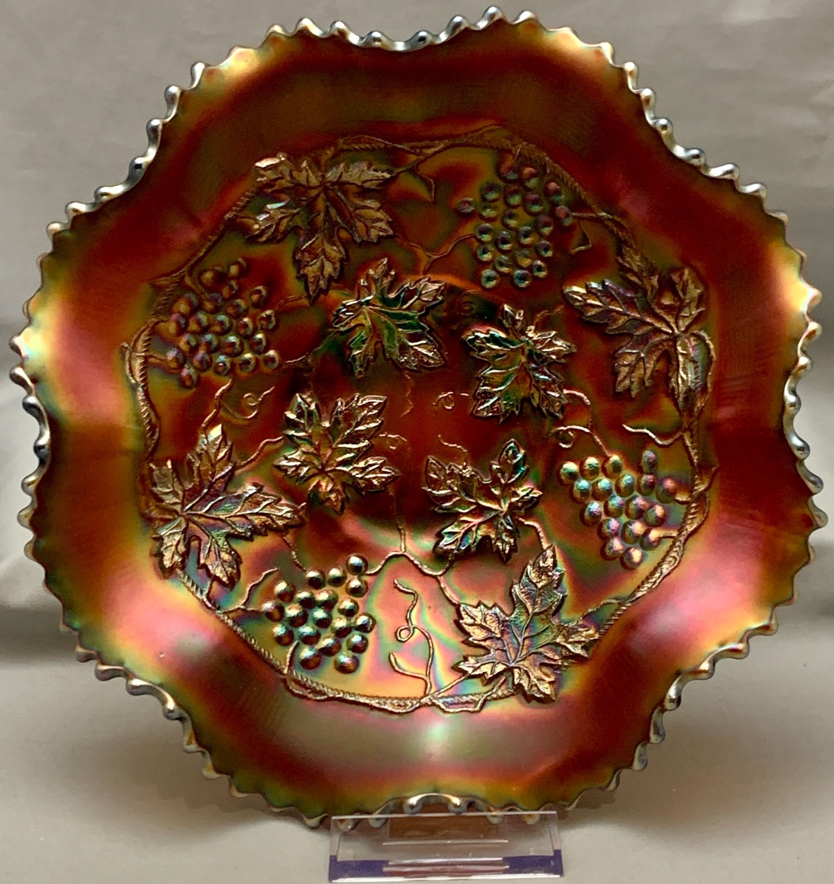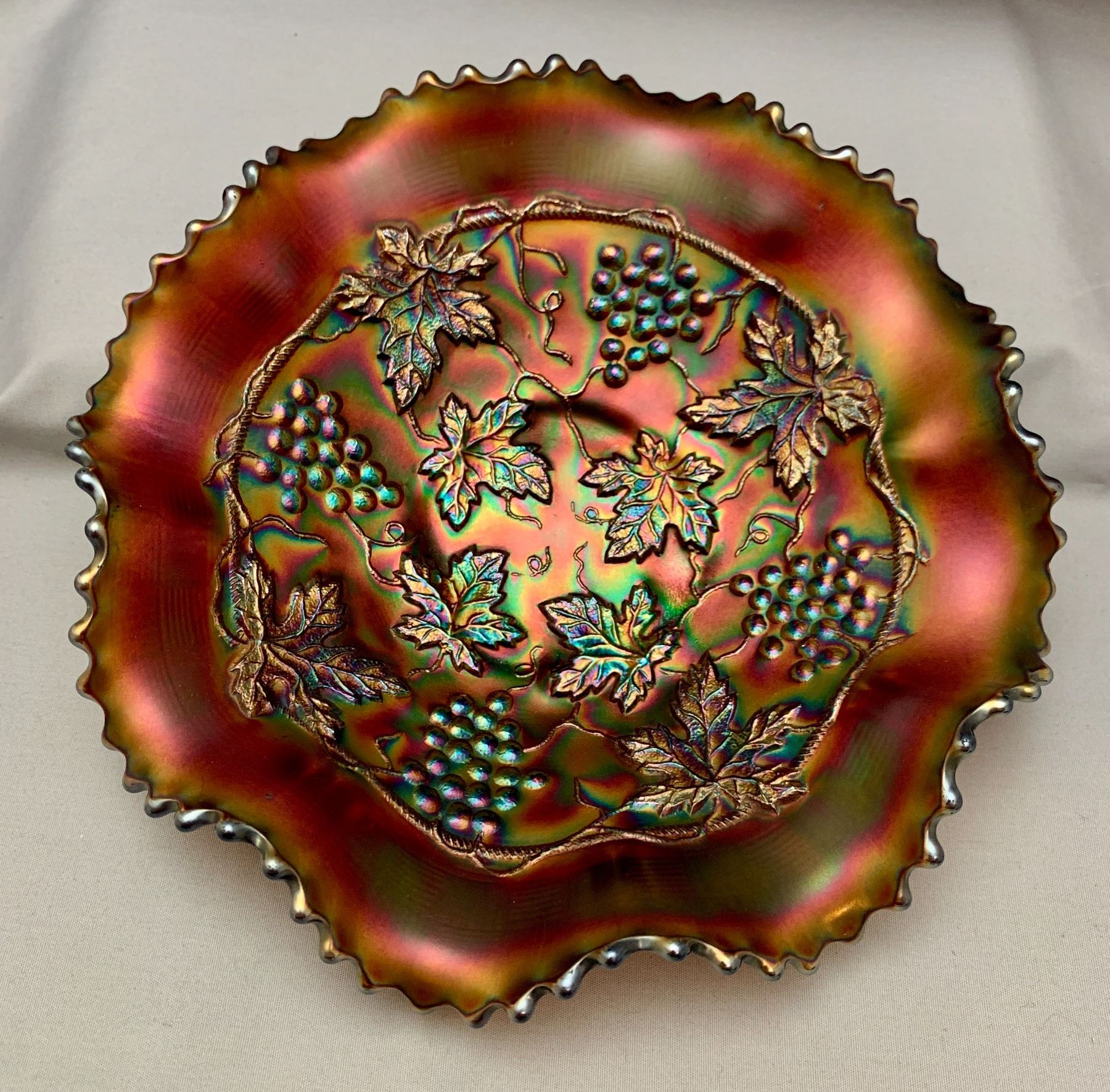 Northwood Amethyst Grape + Cable Carnival Glass 8 – Ruffled Bowl - Circa 1909