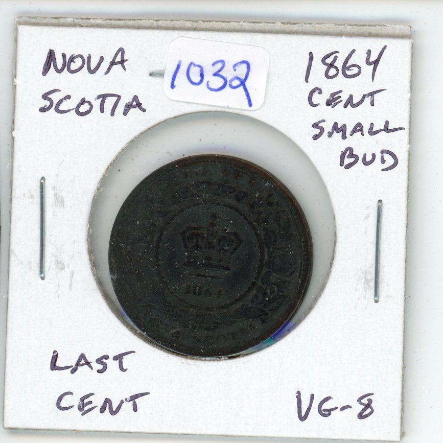 Nova Scotia. 1864 Cent with Small Bud. The last Large Cent issued by the Colony before it joined Canada. VG-8.