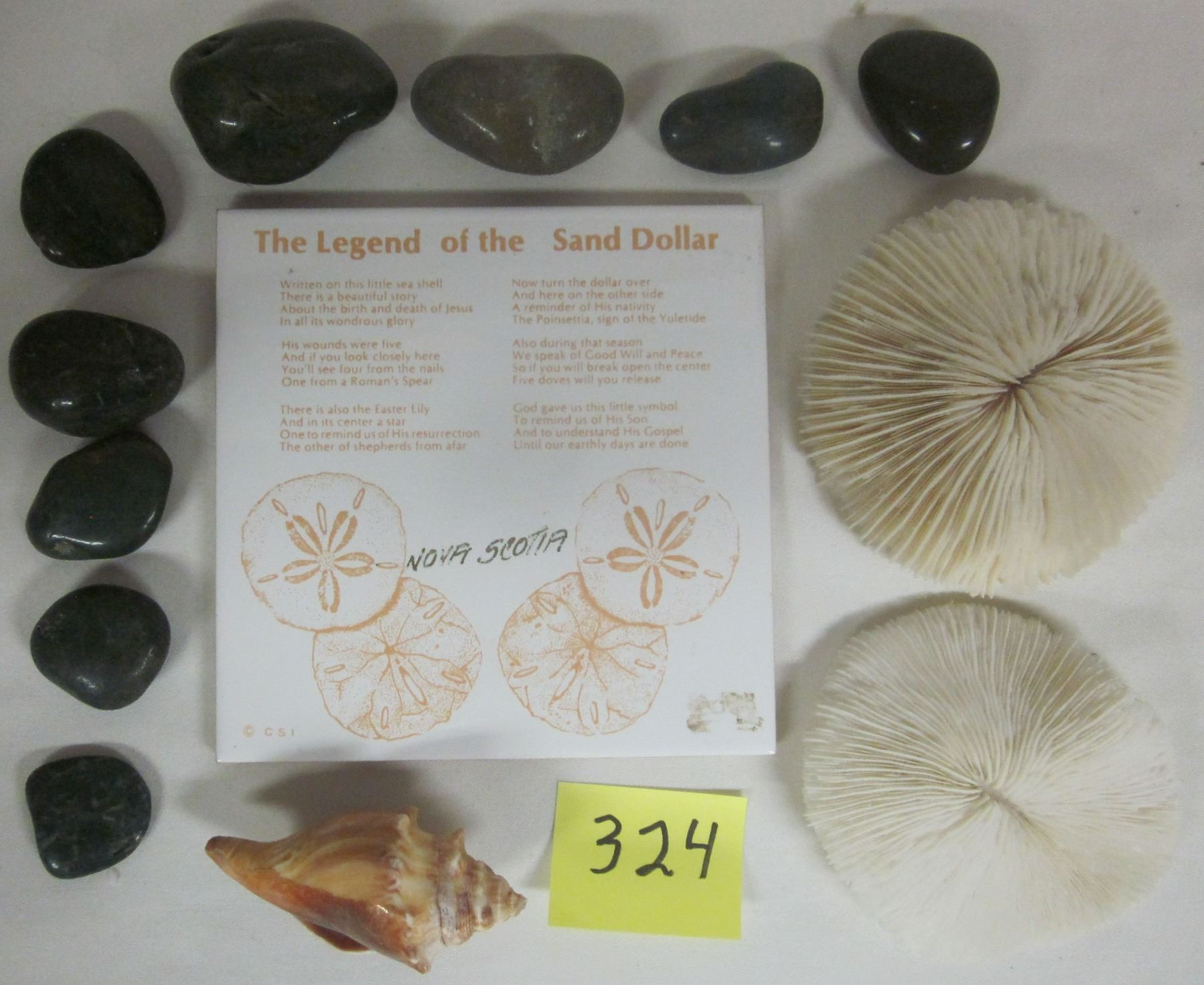 Nova Scotia sand dollar plaque/ 2 sand dollars souvenier shell & stones