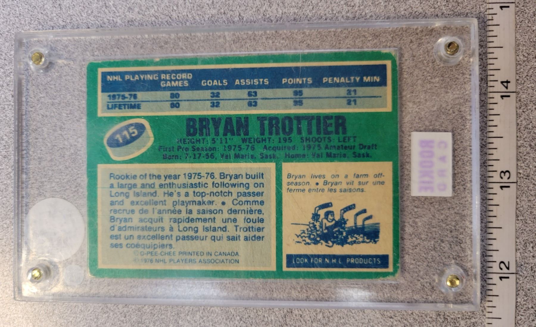 O.P.C. 1976-77 Bryan Trottier rookie card V.F. condition