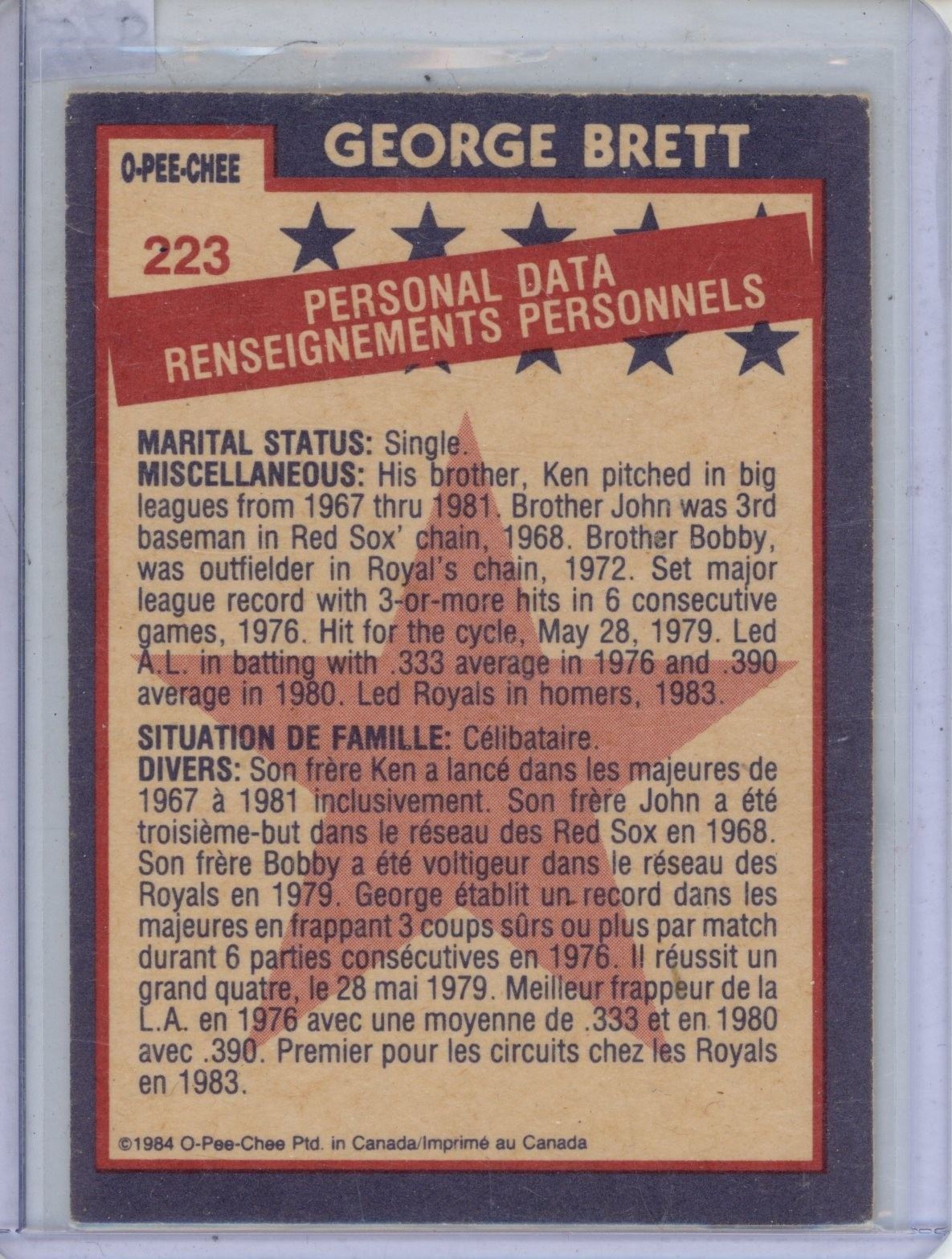 O.P.C. 1984 George Brett All Star Kansis-City Royals Mint.