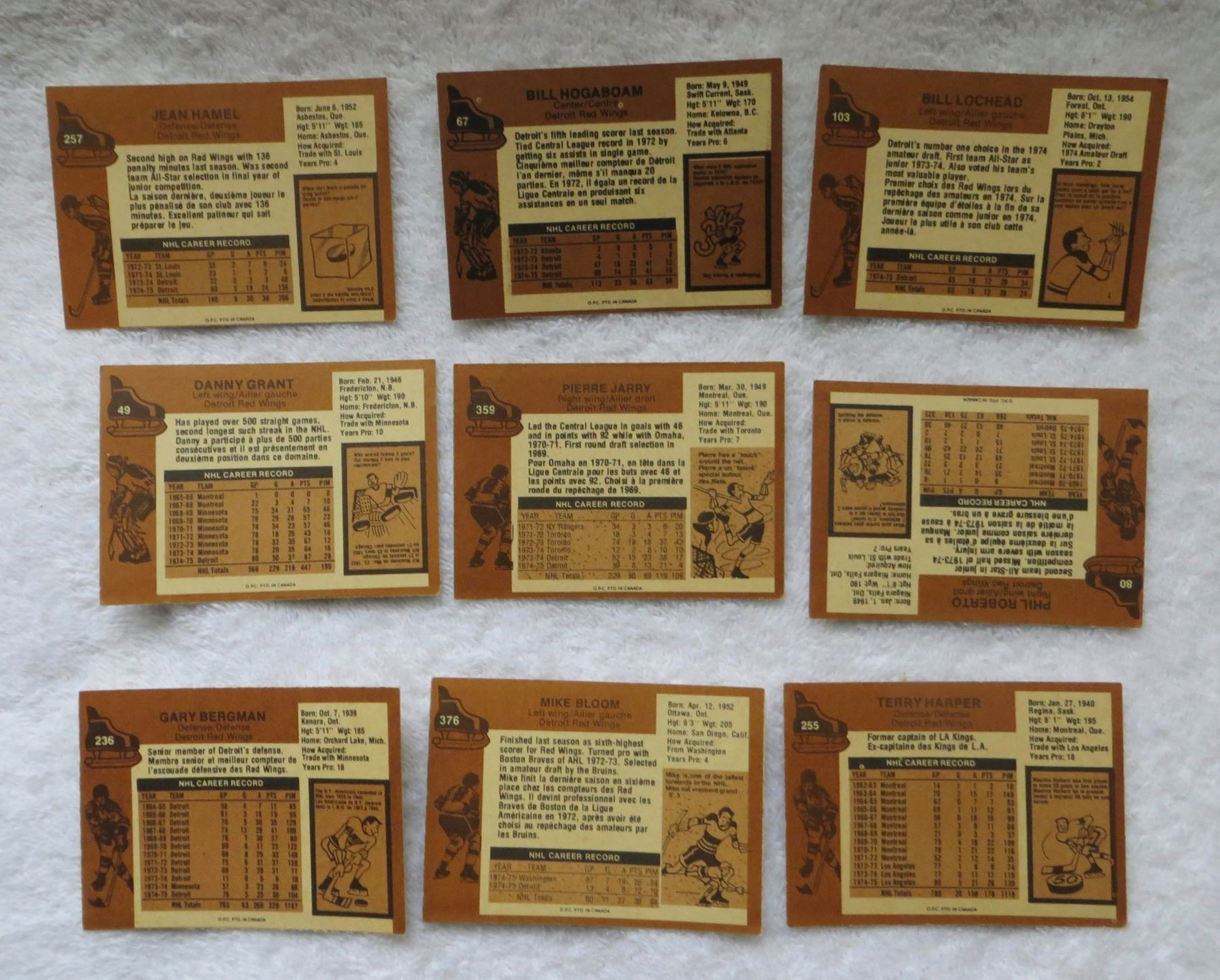 O Pee Chee 1975-76 Detroit Red Wings hockey cards - lot of 9