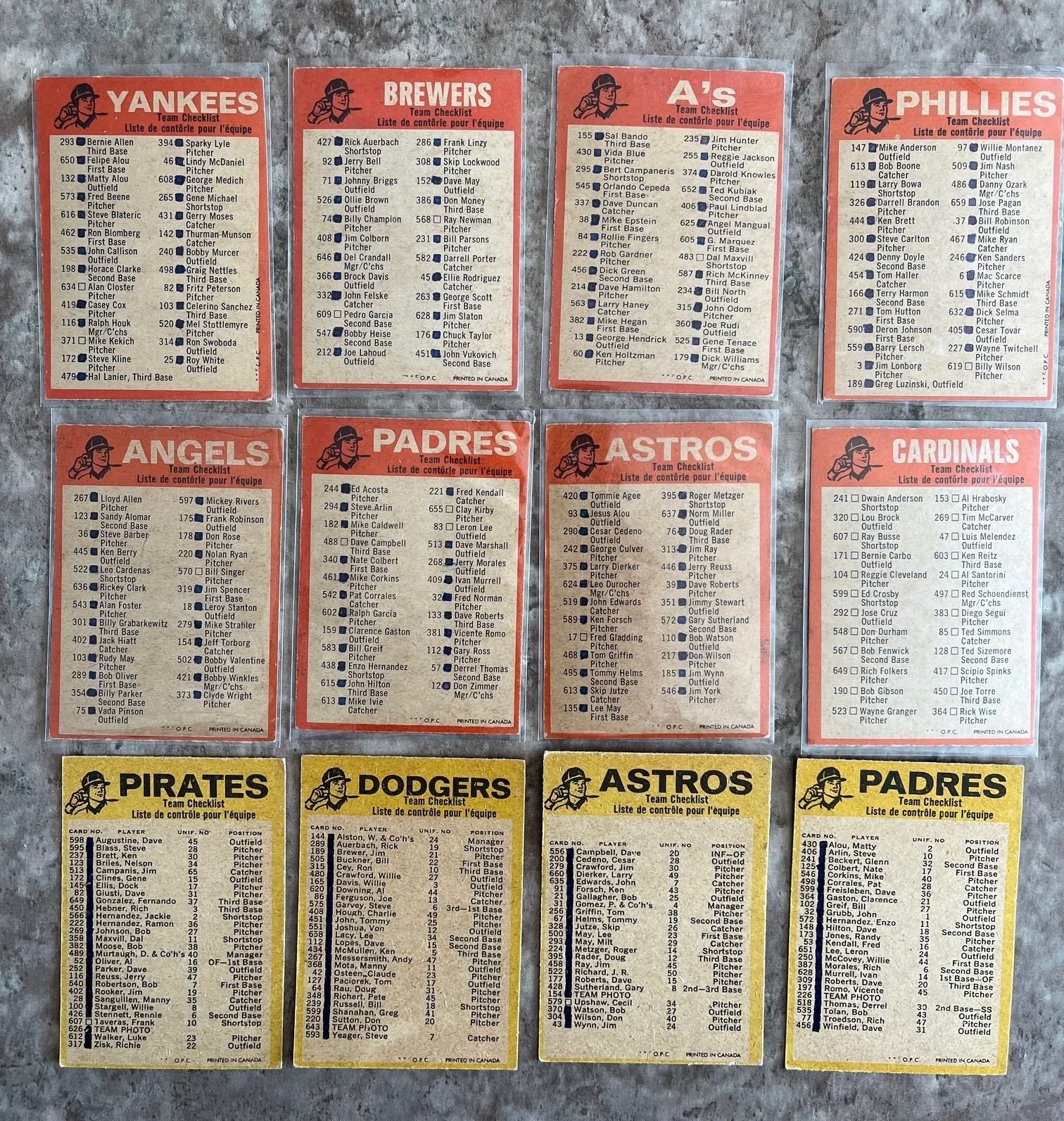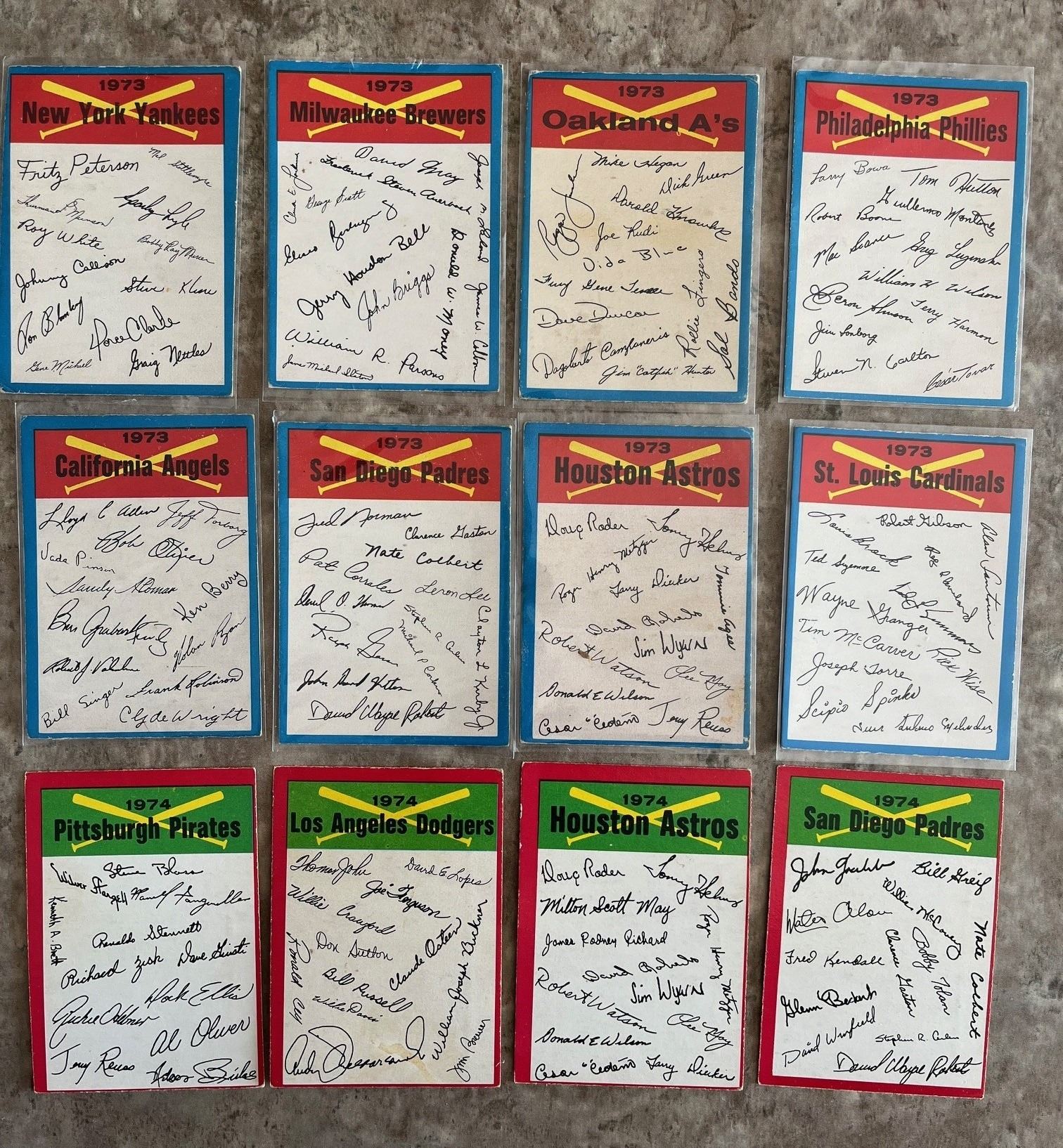 O Pee Chee (OPC) Baseball 1973 & 1974 team signature cards.
