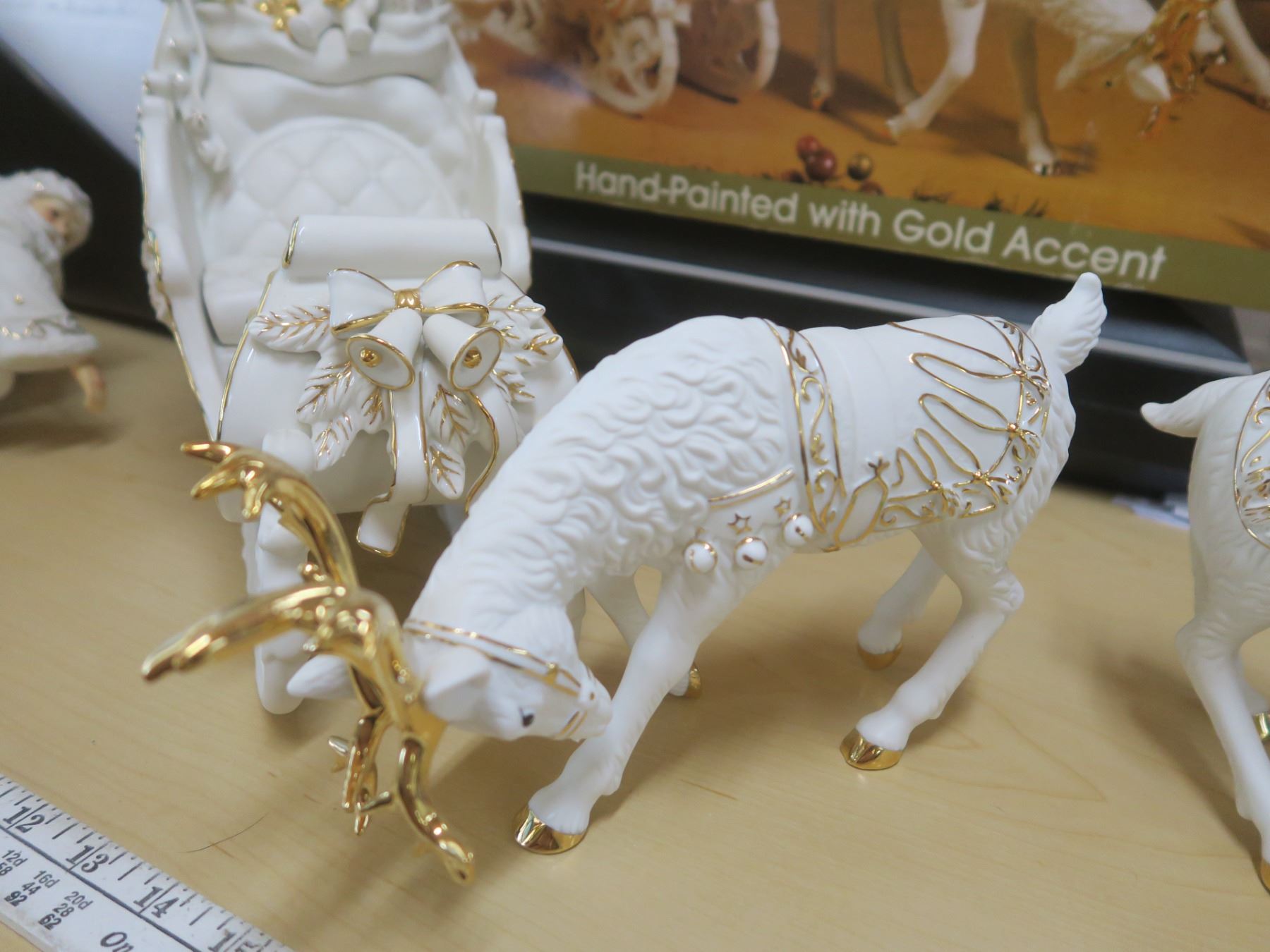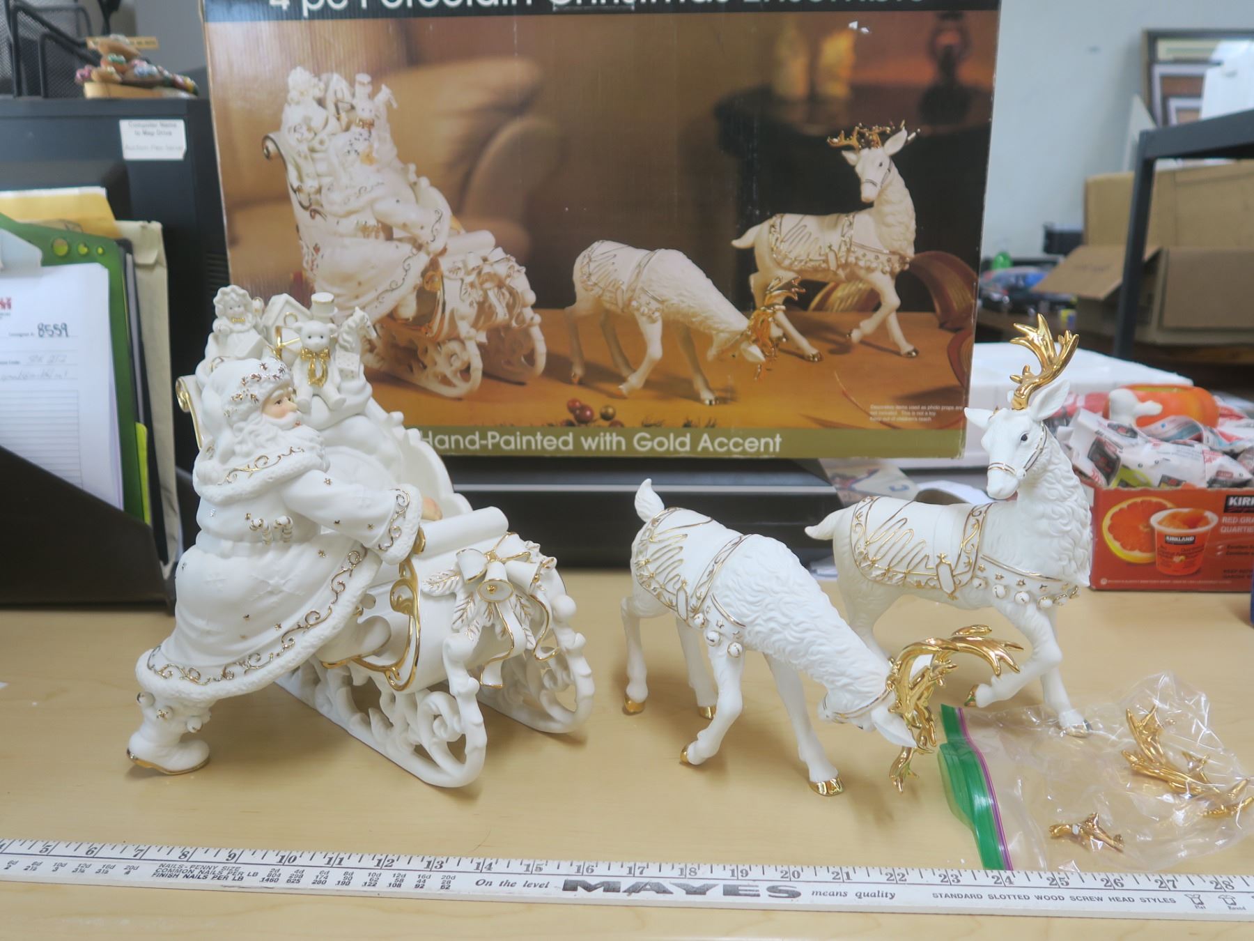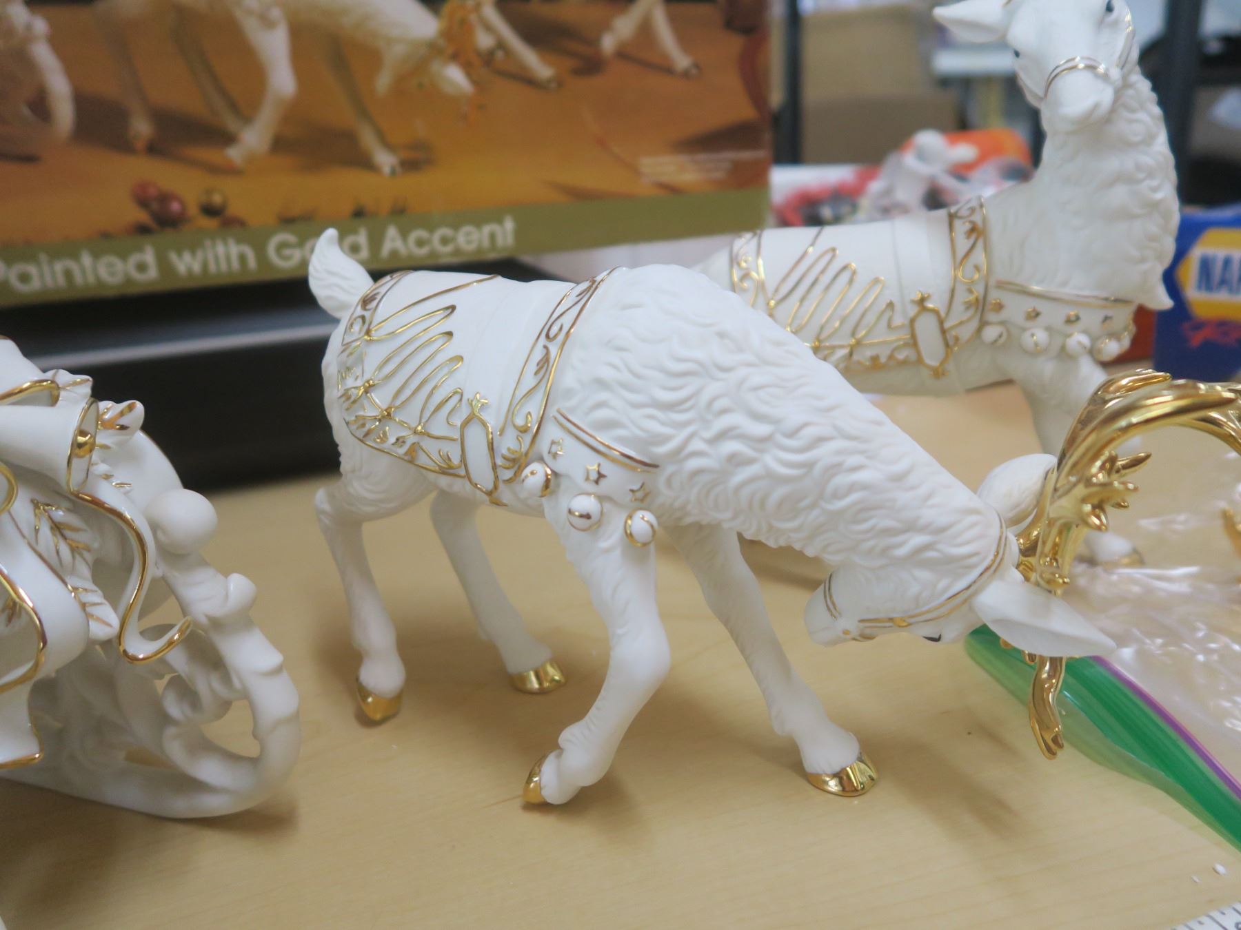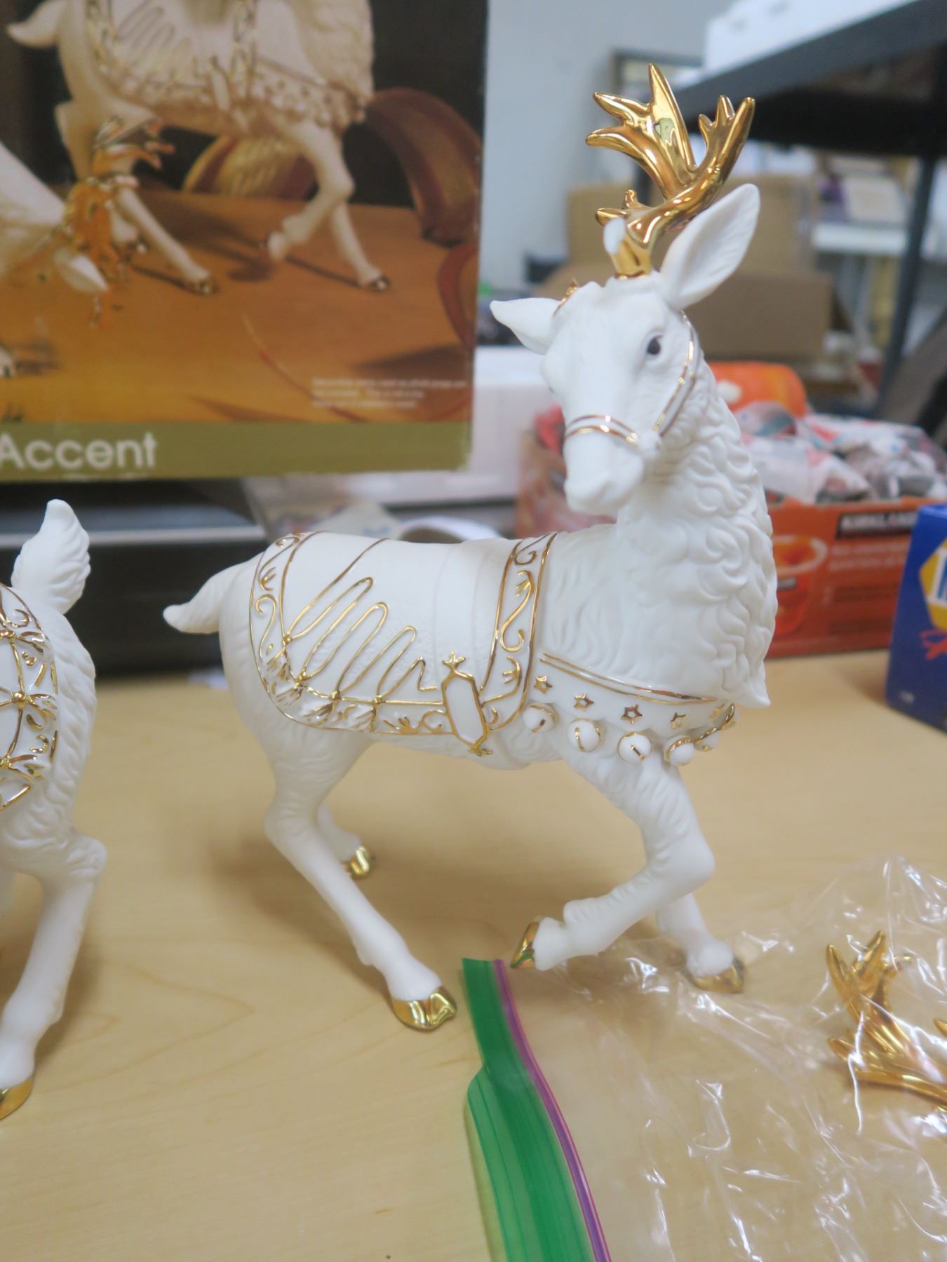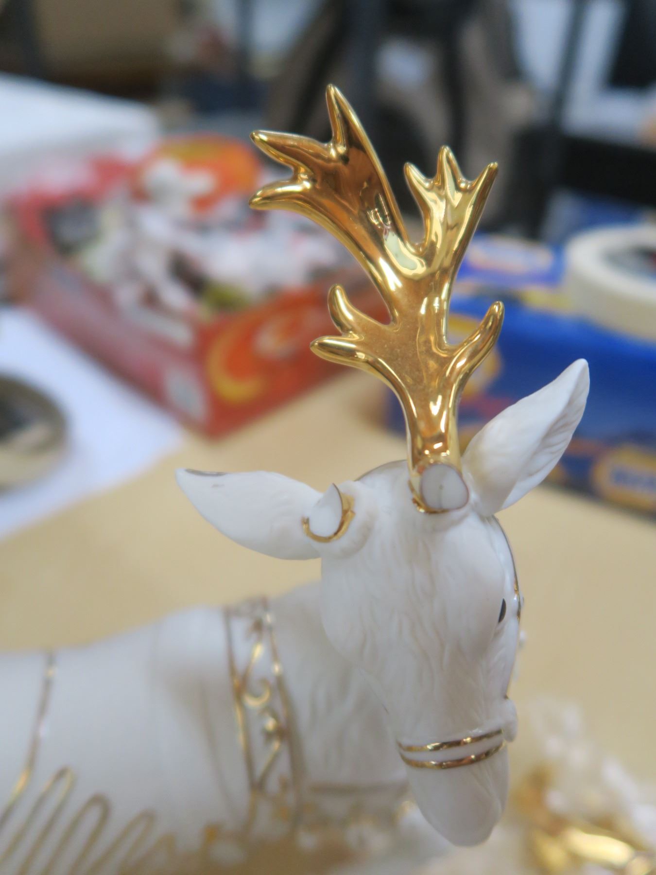 O'Well porcelain hand-painted Christmas ensemble holiday décor - 1 reindeer with antler damage