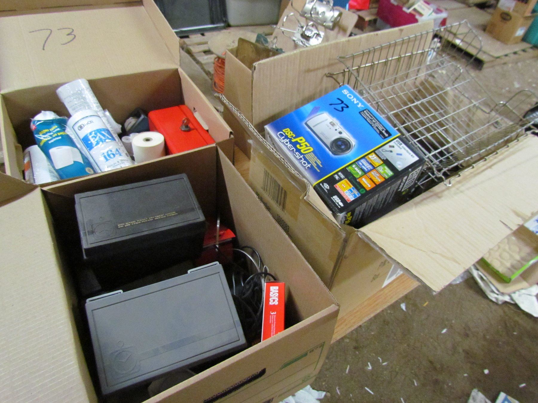 OFFICE SUPPLIES (CASH LOCK BOX, SONY P50 CYBER-SHOT CAMERA, CLIP BOARDS) *4 BOXES*
