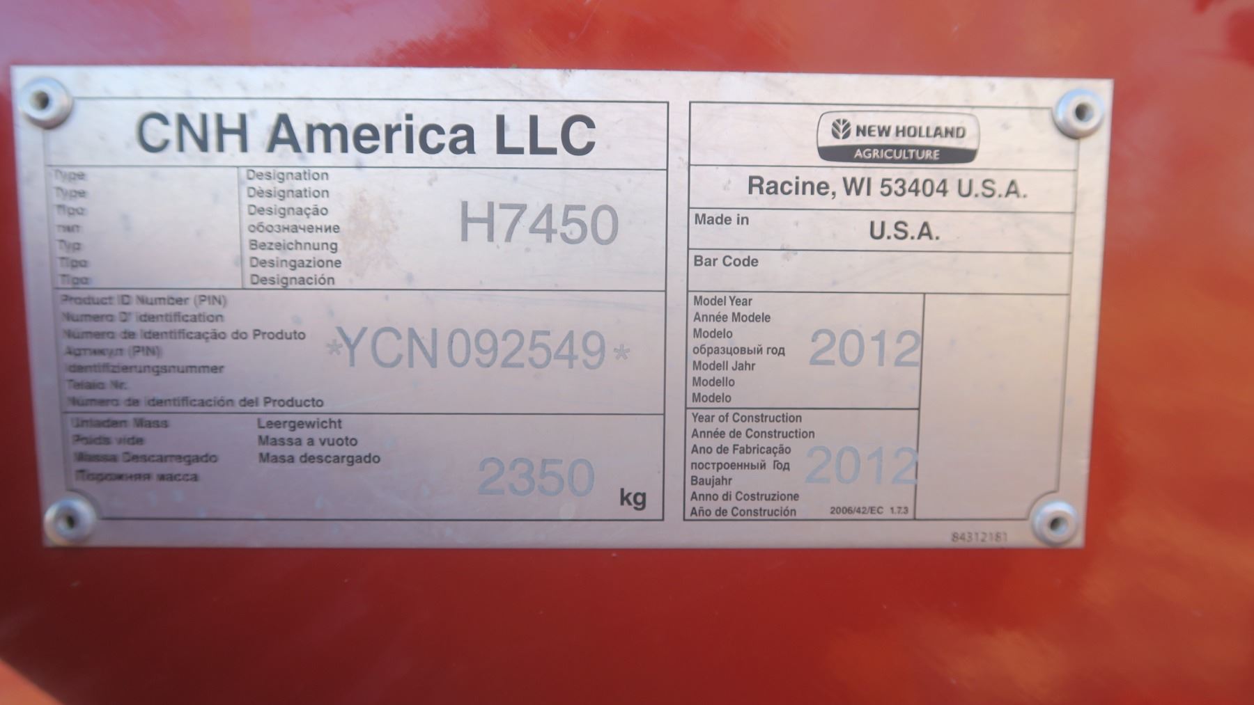 2012 New Holland H7450 Discbine - Sold As Is - This item is located OFF-SITE near Macdowall, SK, Please call for directions and viewing times: 306-922-2300.