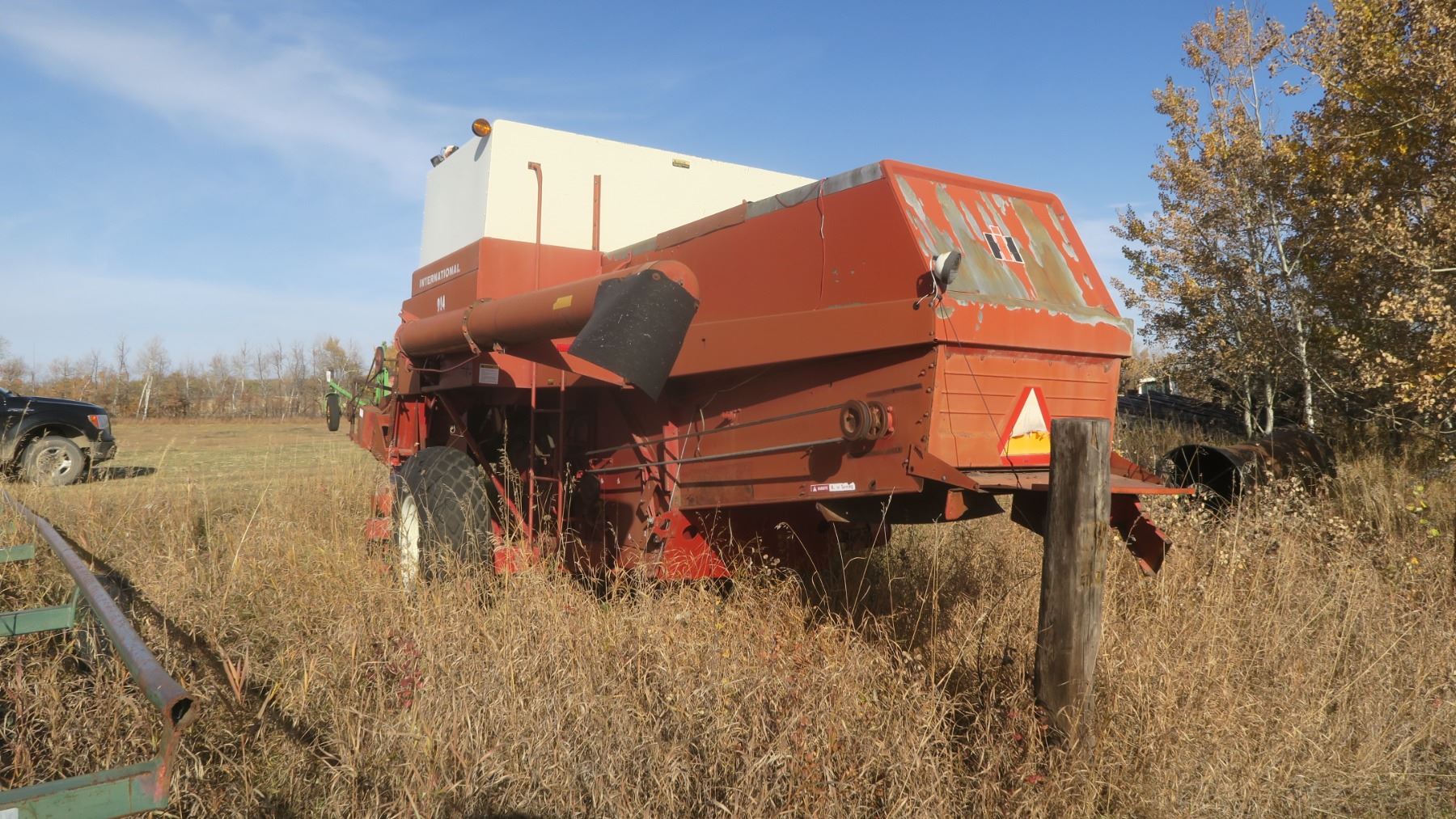 IH 914 Pull Type Combine w/ Co-op Pick-up 11ft. - Sold As Is - This item is located OFF-SITE near Macdowall, SK, Please call for directions and viewing times: 306-922-2300.