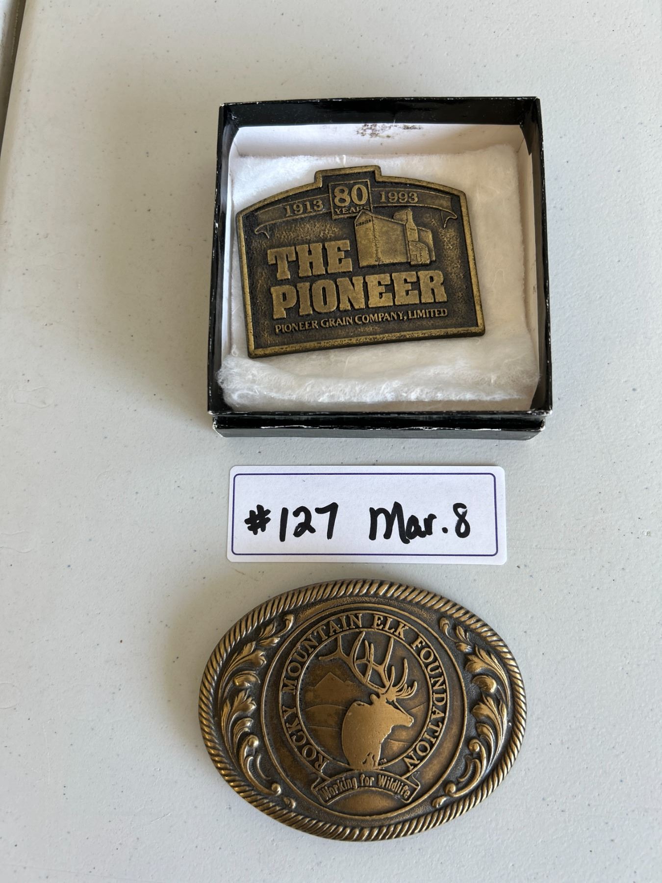 *OFFSITE* Rocky Mountain Elk Foundation and Pioneer 80th anniversary (ser. #014569) belt buckles