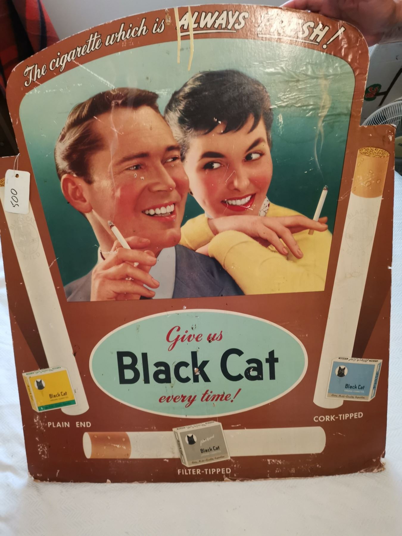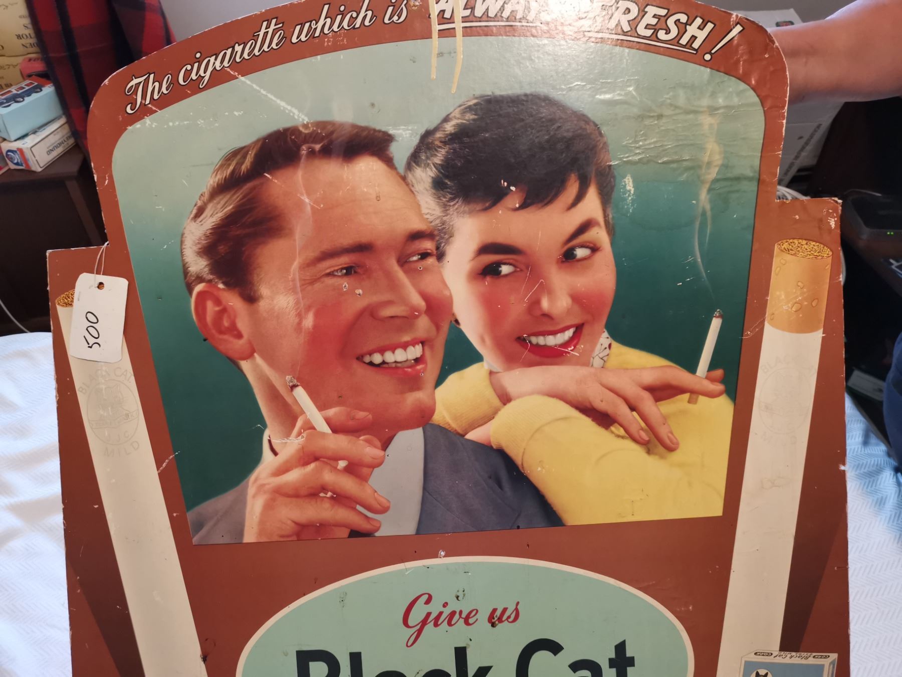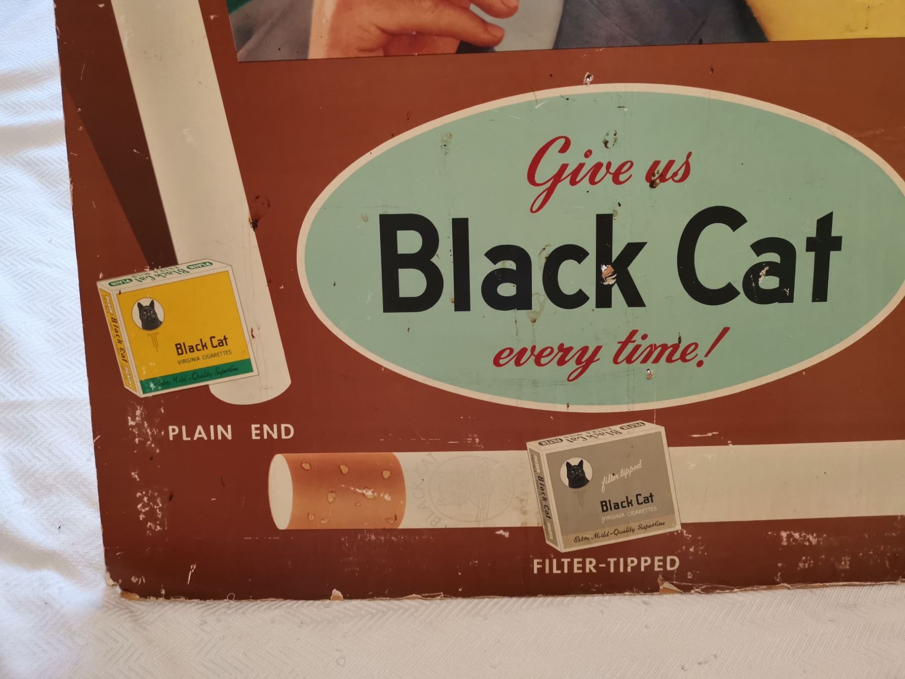 OLD BLACK CAT CARDBOARD SIGN 28" X 33"
