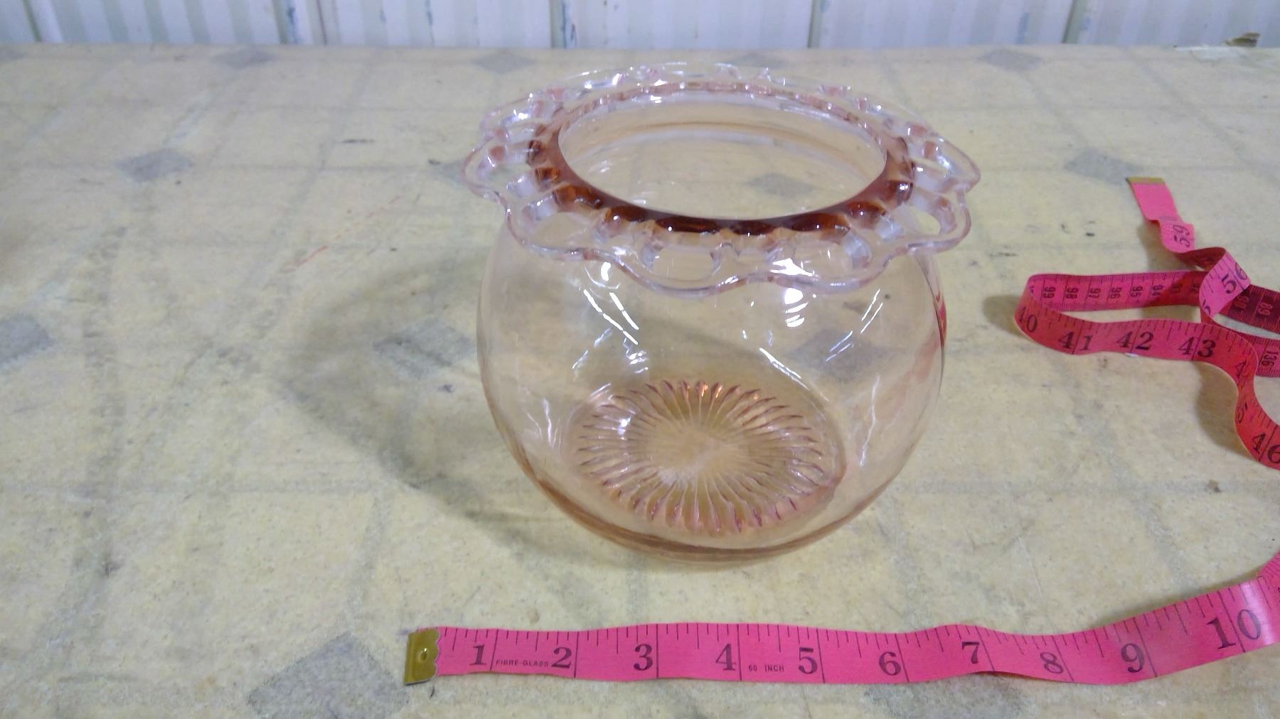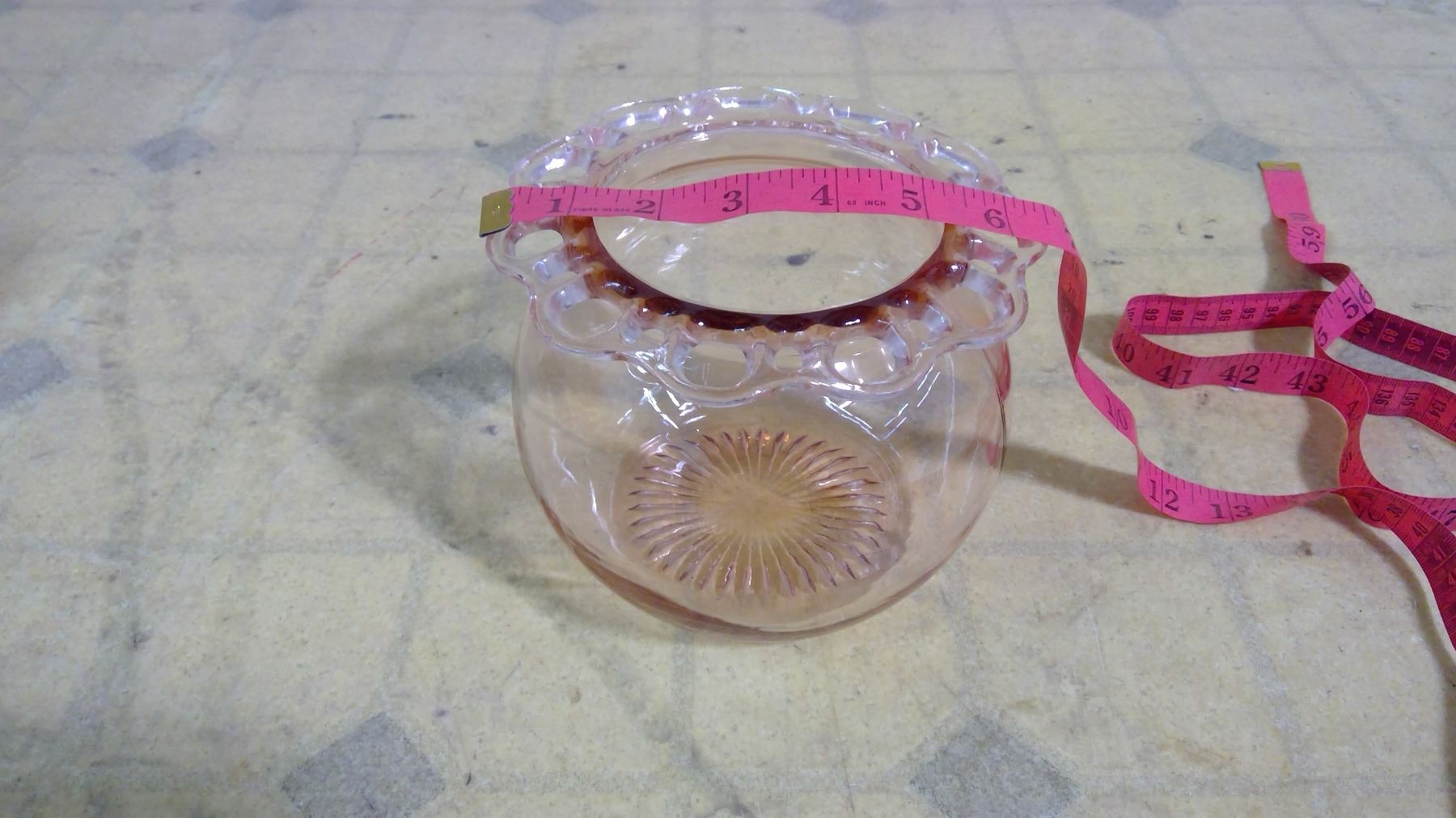 OLD CLEAR PINK BOWL + ITEMS IN BOX