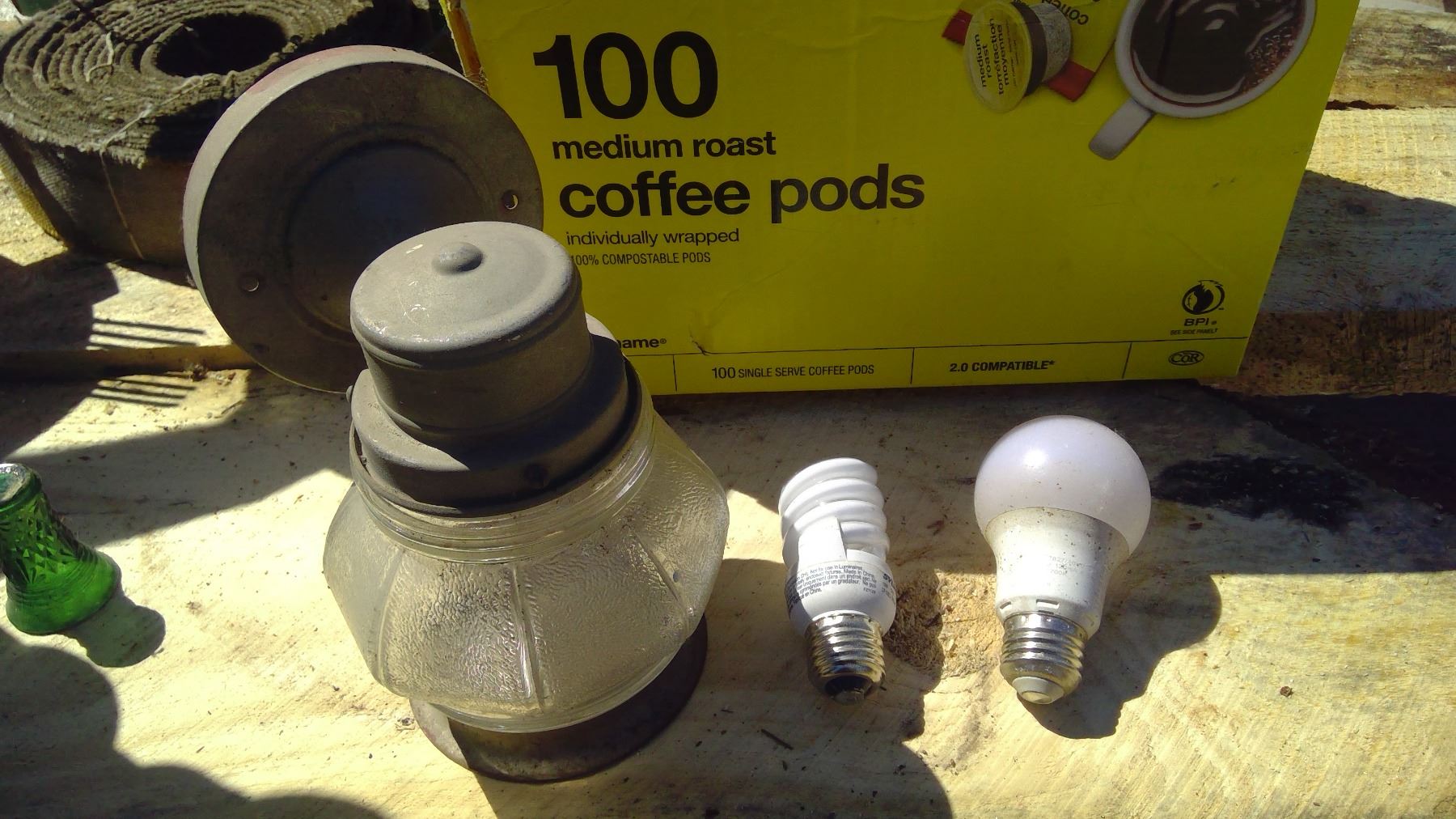OLD LANTERN+LIGHT BULBS+ODS/ENDS