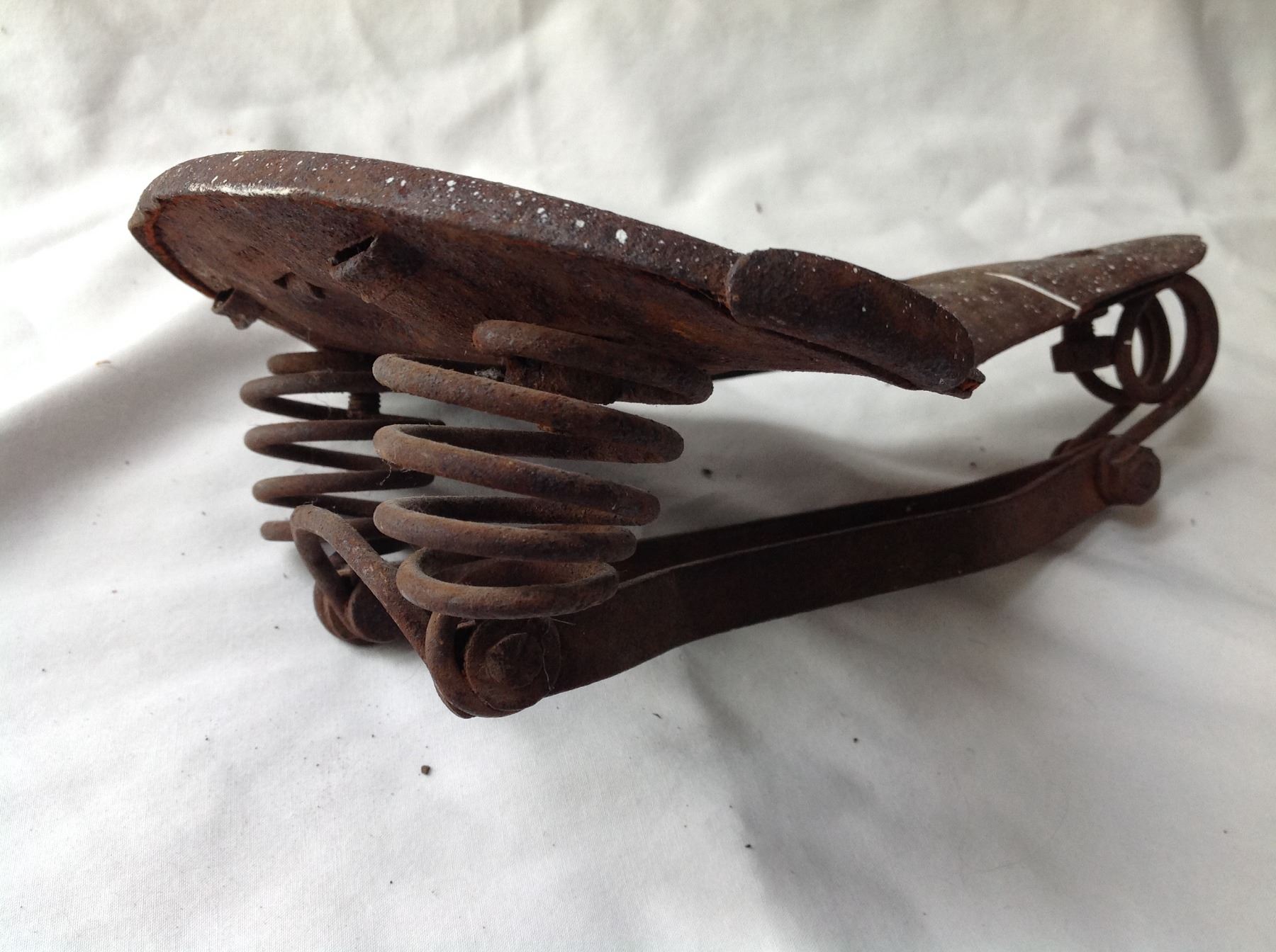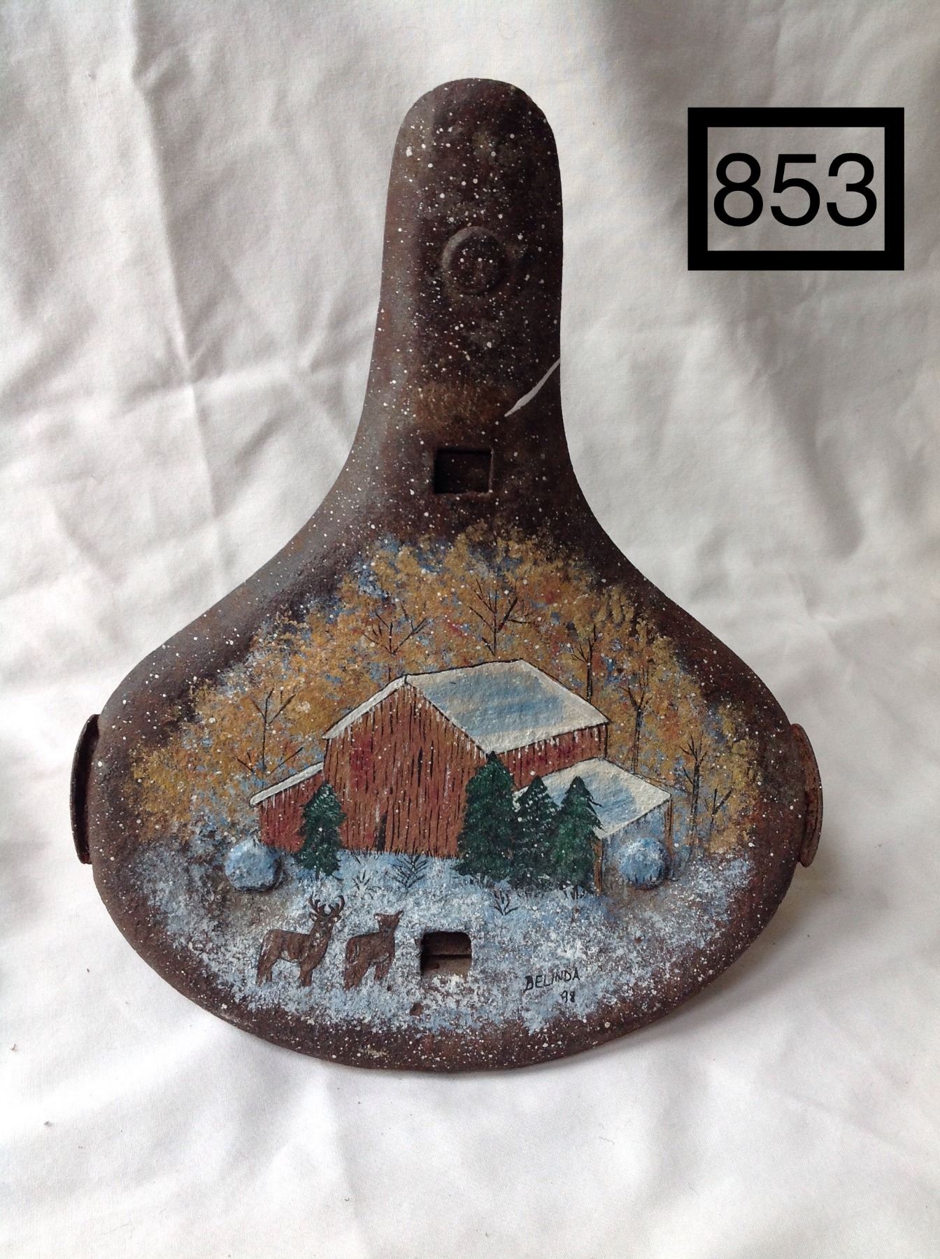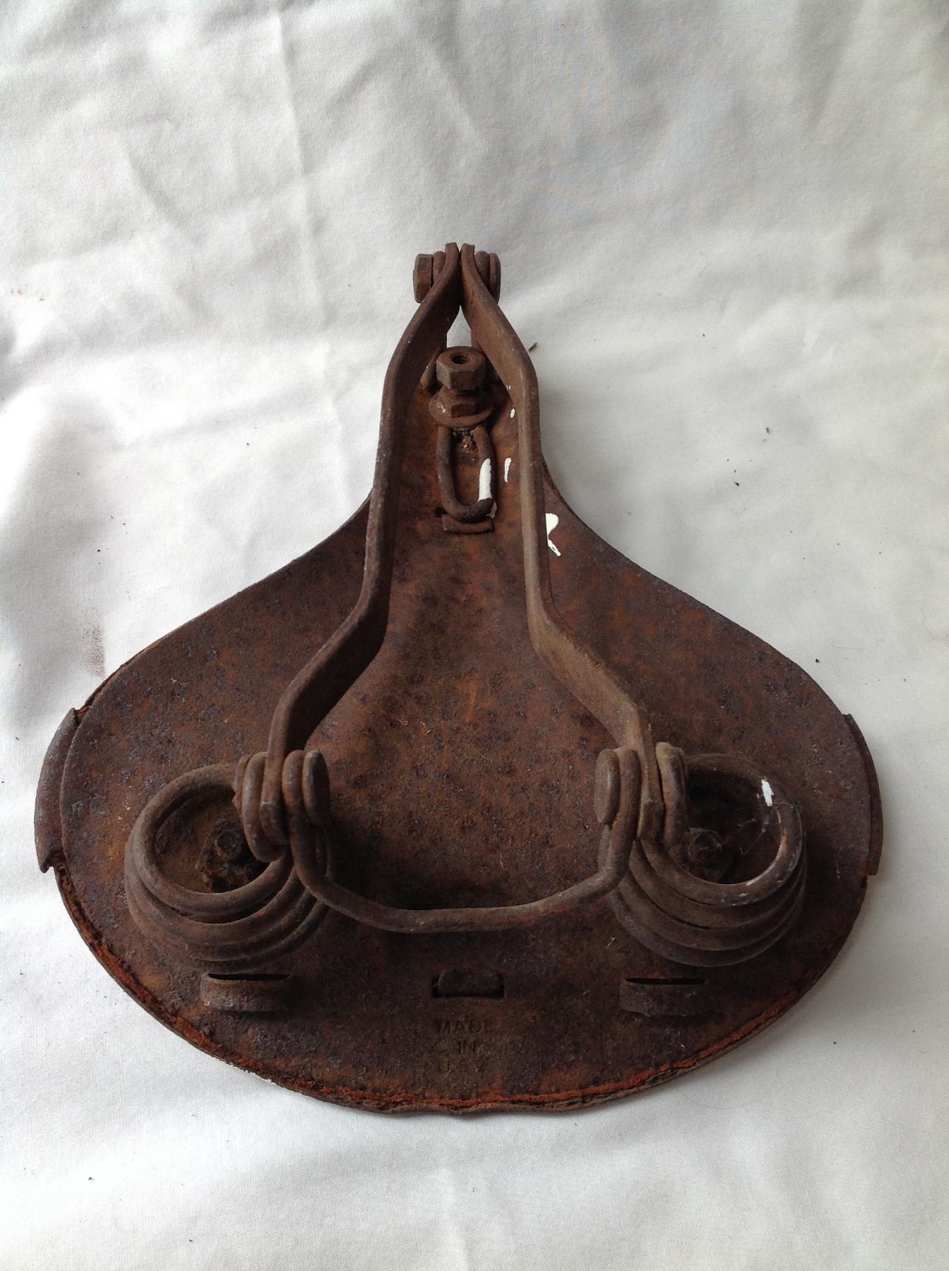 OLD SPRING BIKE SEAT WITH PAINTED PICTURE ON THE SEAT