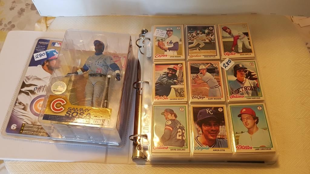 OLDER BASEBALL CARDS IN ALBUM & ACTION FIGURE