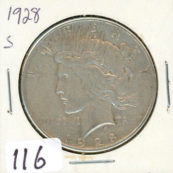 ONE DOLLAR COIN (USA) *1928 S* (PEACE) *SILVER*
