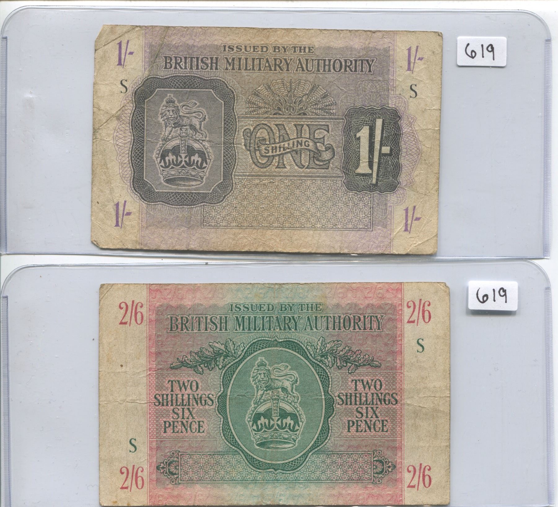 ONE SCHILLING & TWO SCHILLINGS (BRITISH MILITARY AUTHORITY)