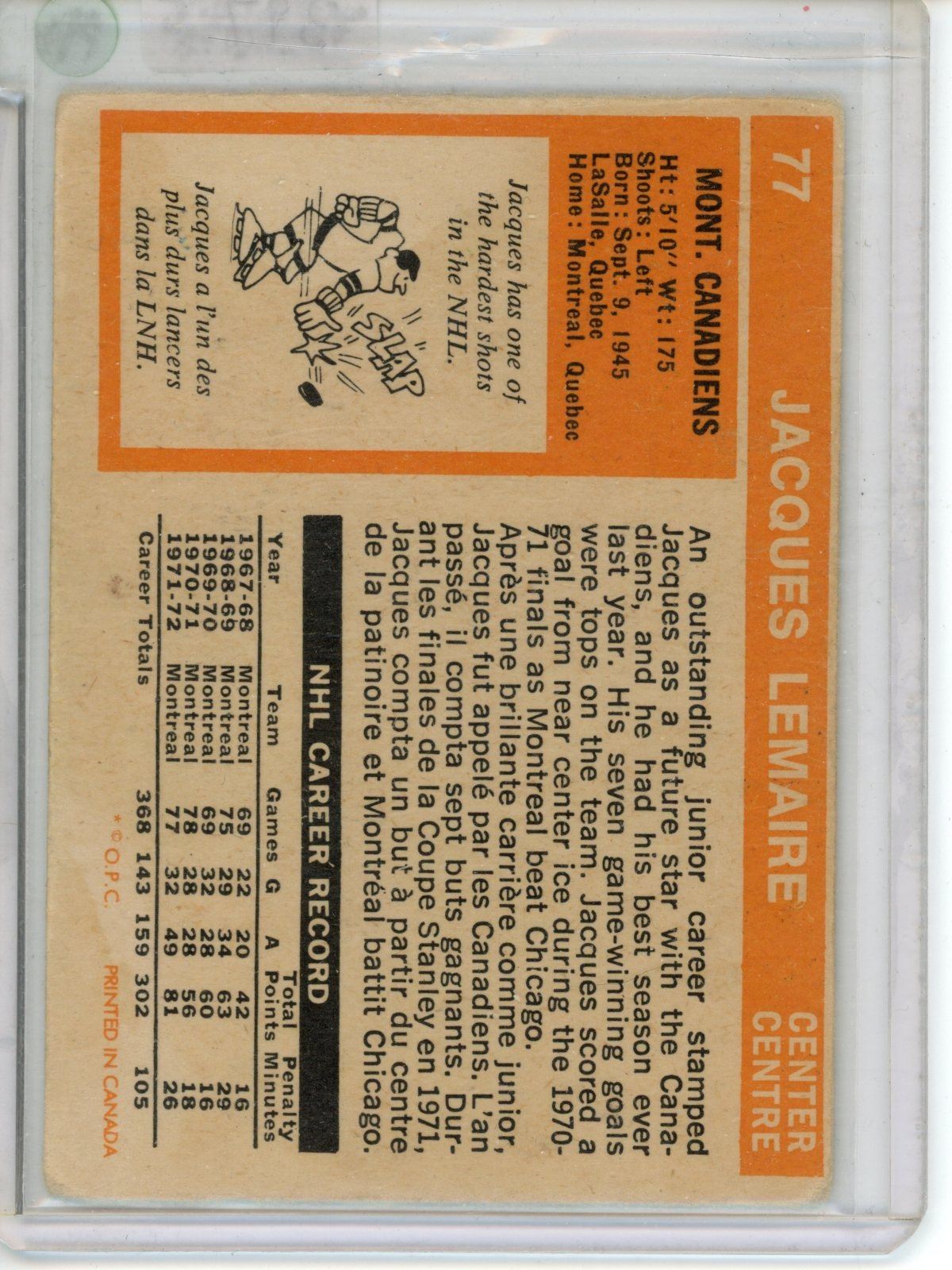 OPC 1972-73 Jacques Lemair card