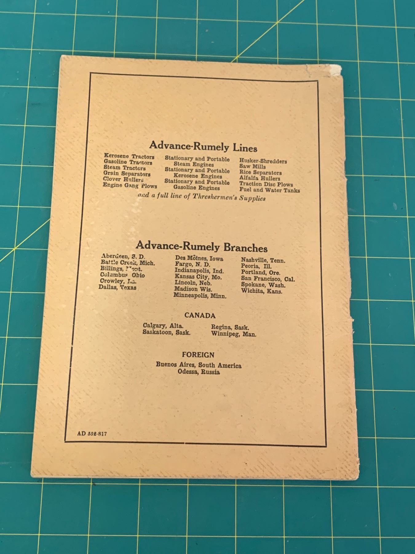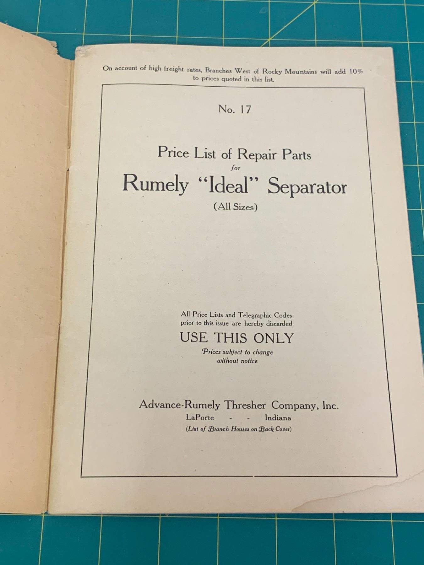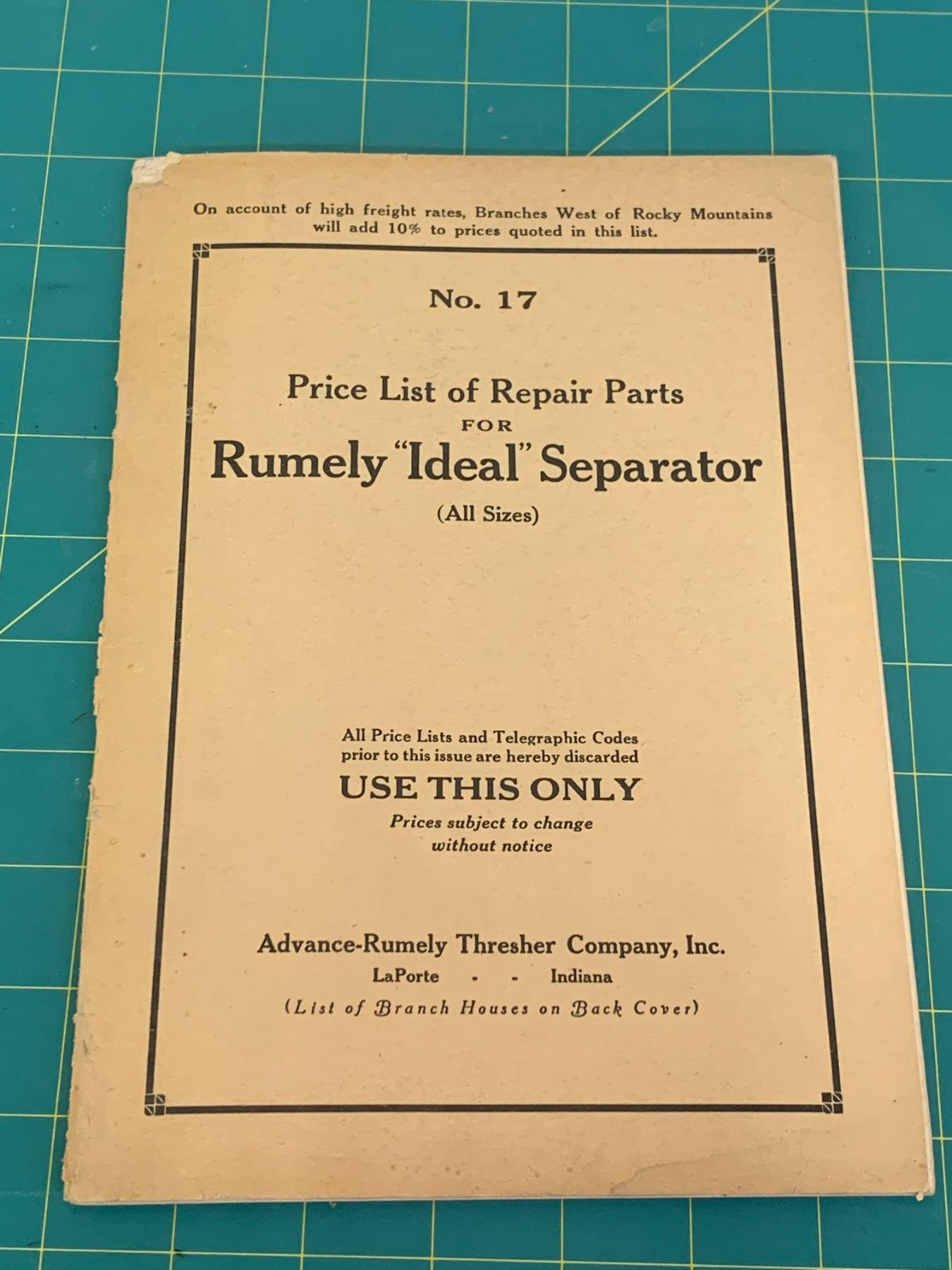 ORIGINAL 68 PAGE RUMELY IDEAL SEPERATOR THRESHING MACHINE PARTS LIST BOOK