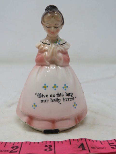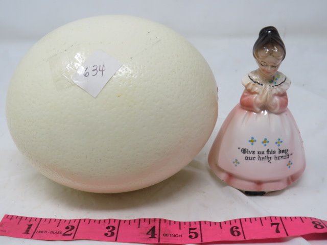 OSTRICH EGG & SALT/PEPPER SHAKER (PRAYER LADY *REPAIRED*)