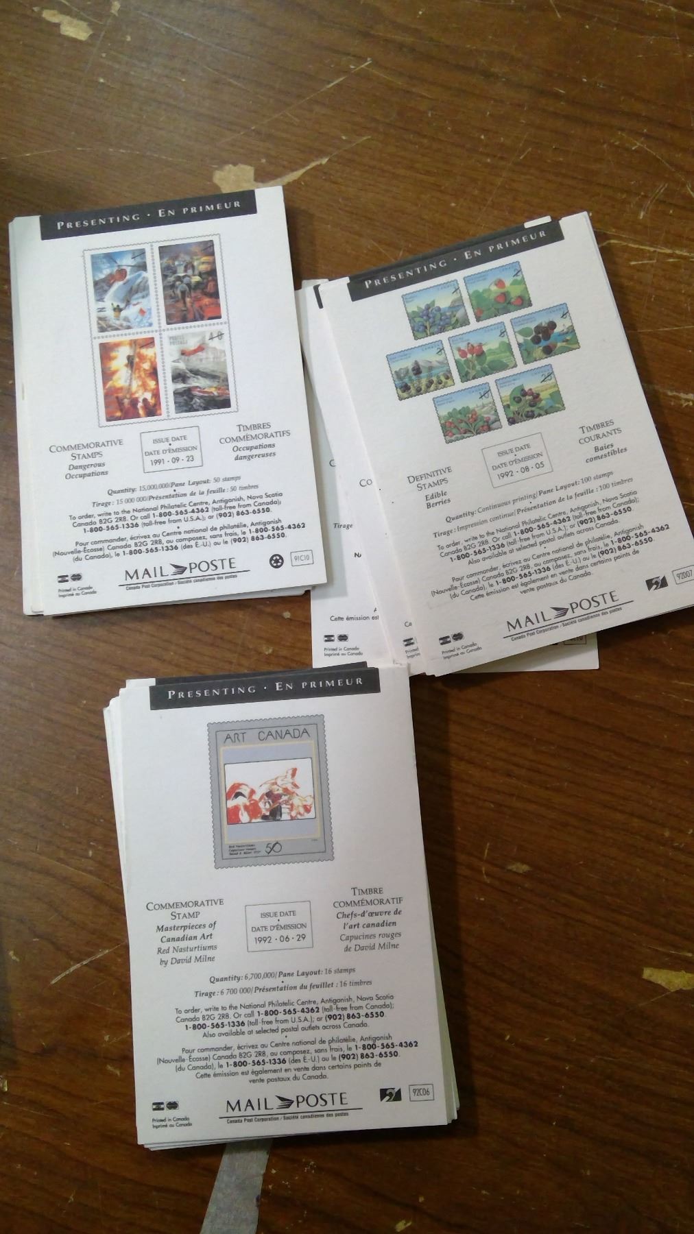 OVER 60 CARDS ISSUED TO STAMP COLLECTORS INFORMING ABOUT NEW ISSUES BY CANADA POST