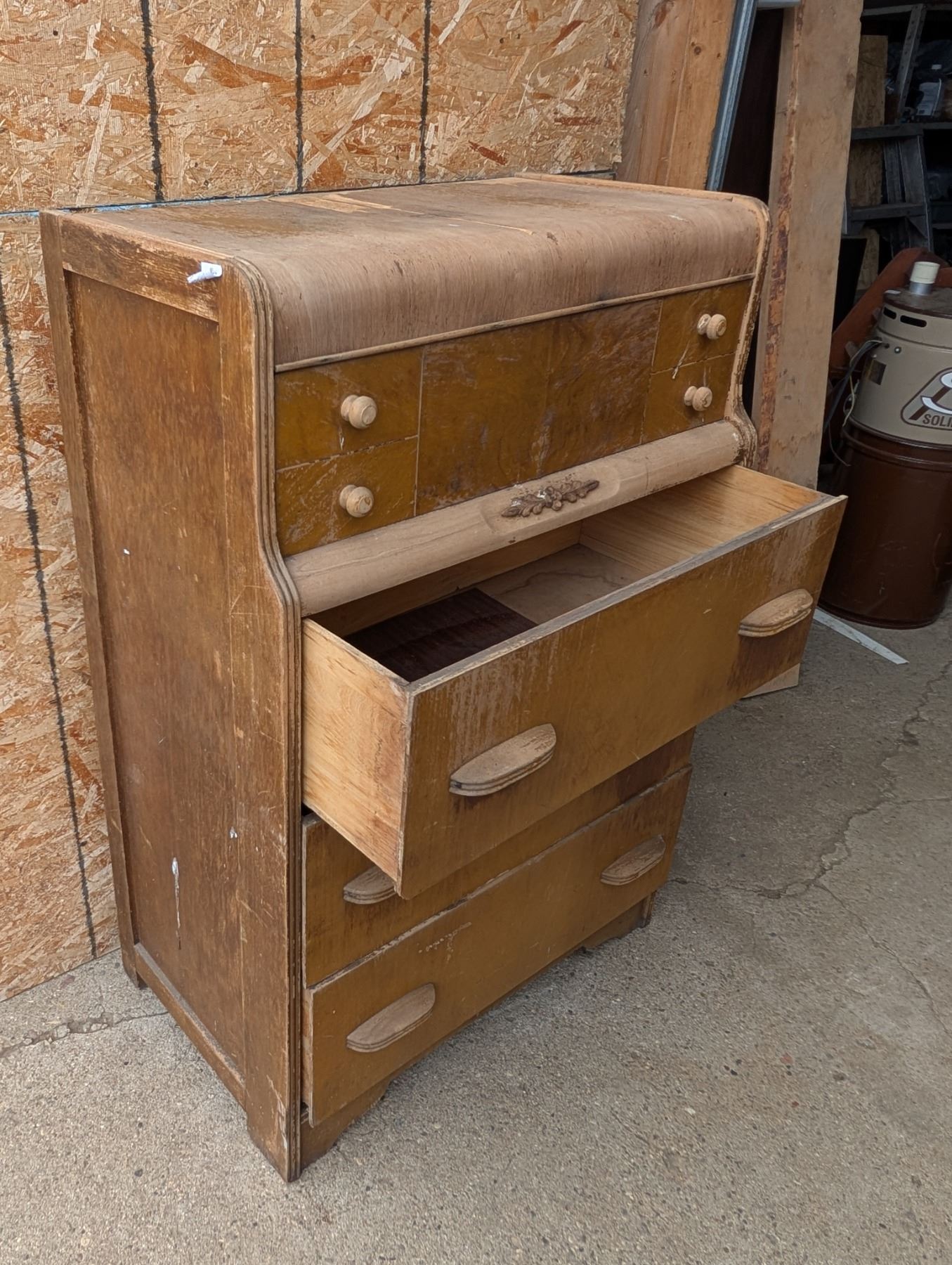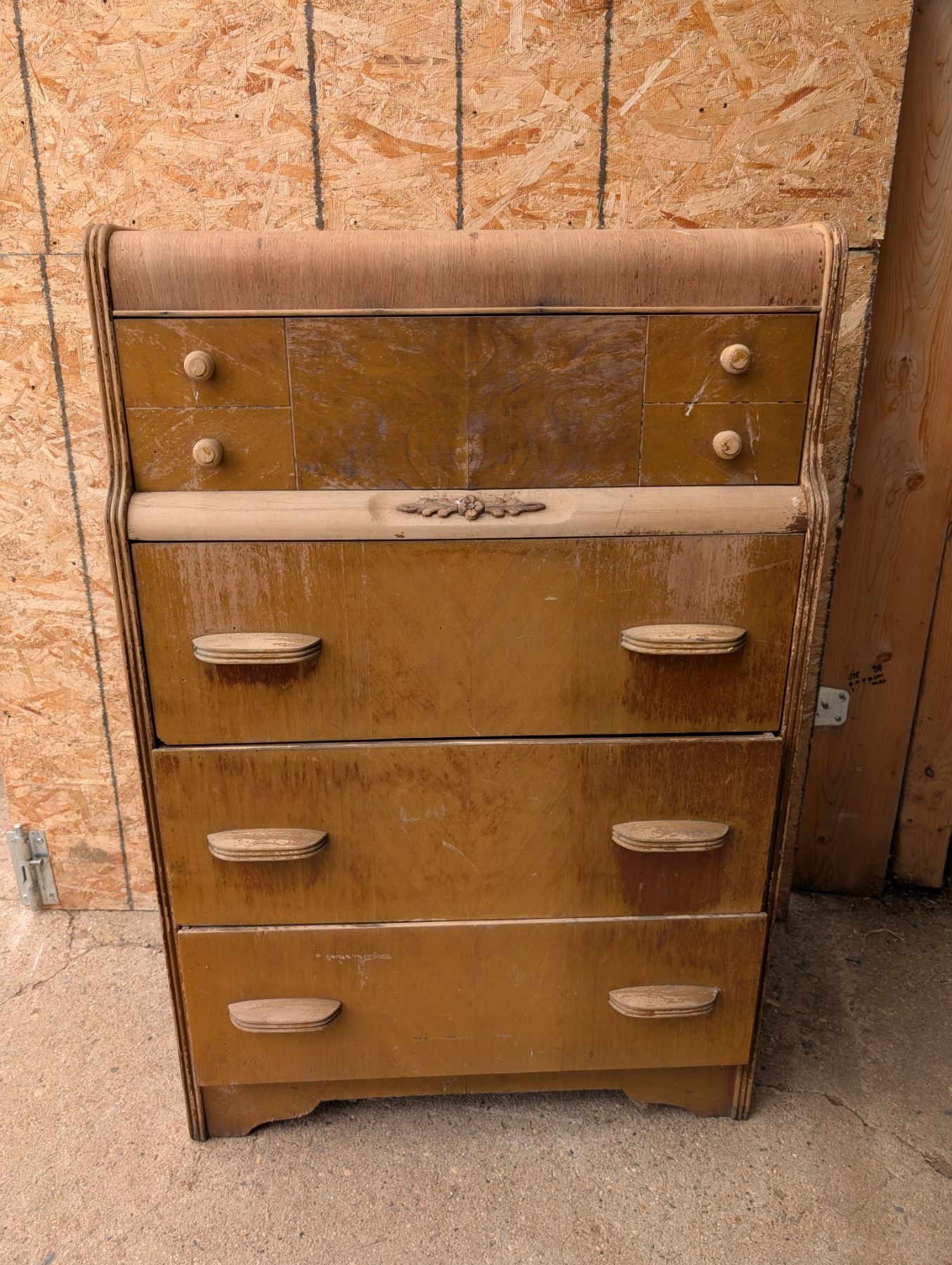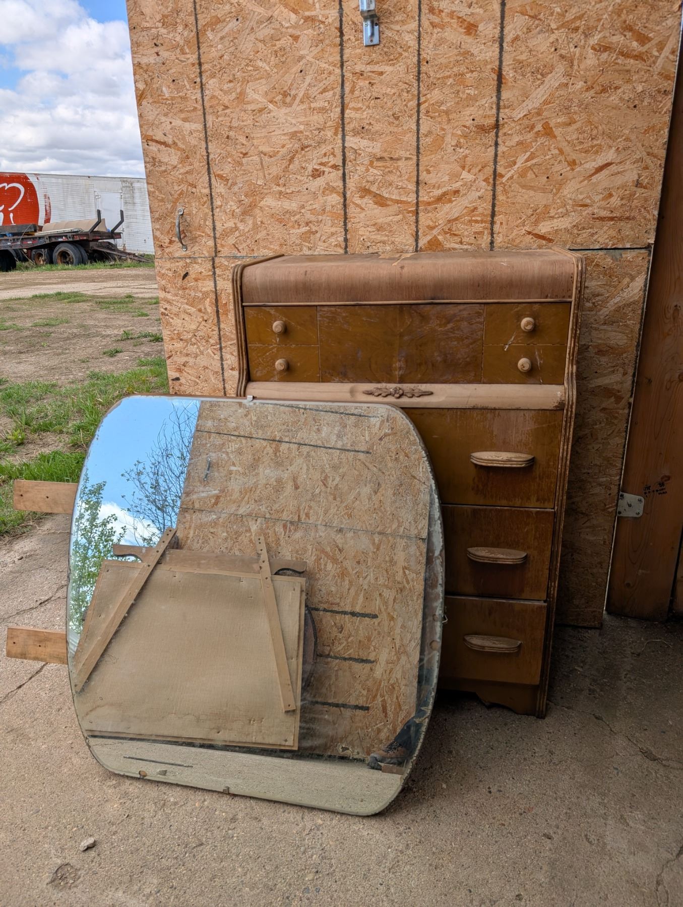Oak 4 Drawer Dresser 30"x45"x16" / Large round wooden frame Mirror 35"x36"