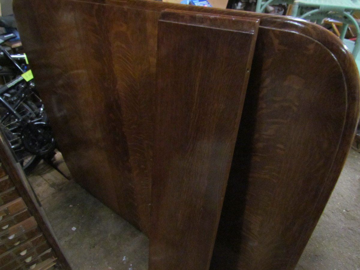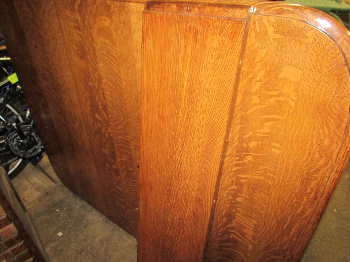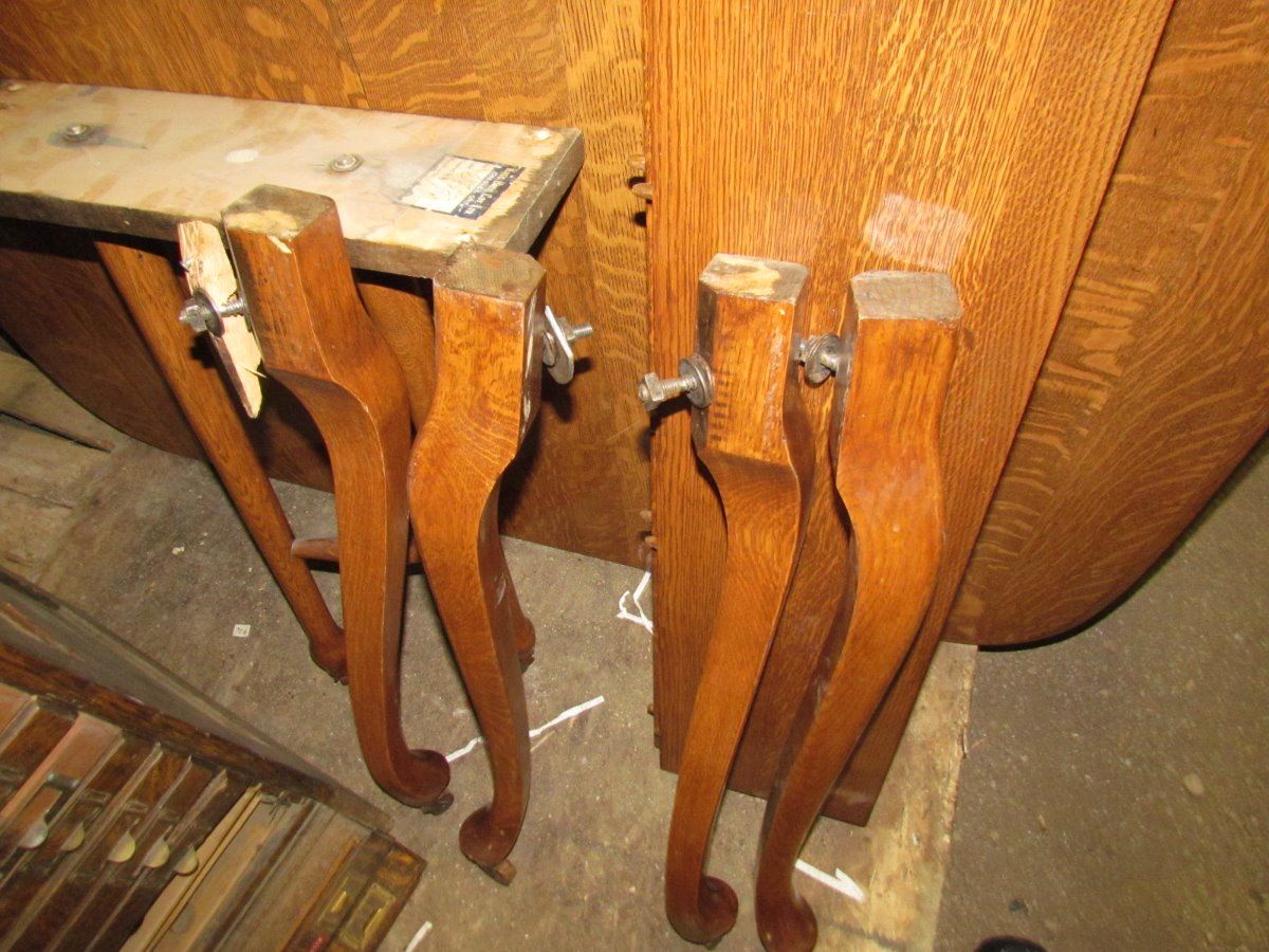 Oak Dining Room Table - 52" x 44" 6 Legs - Two 9" Leaves - one leg base damaged