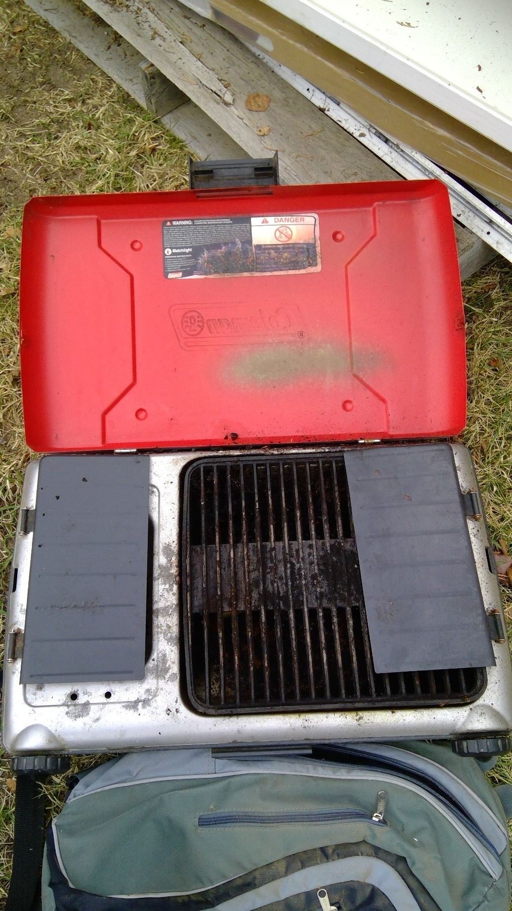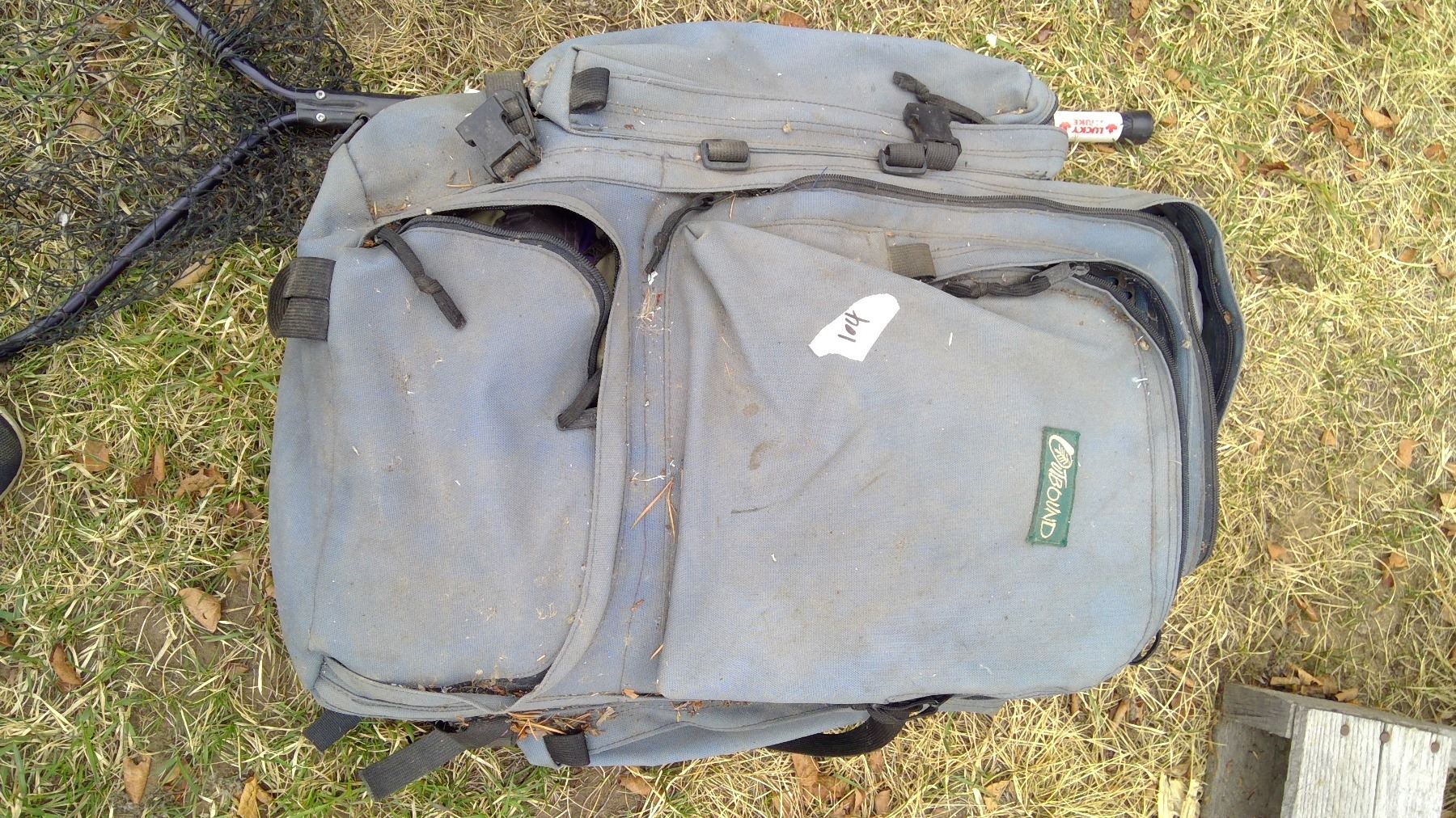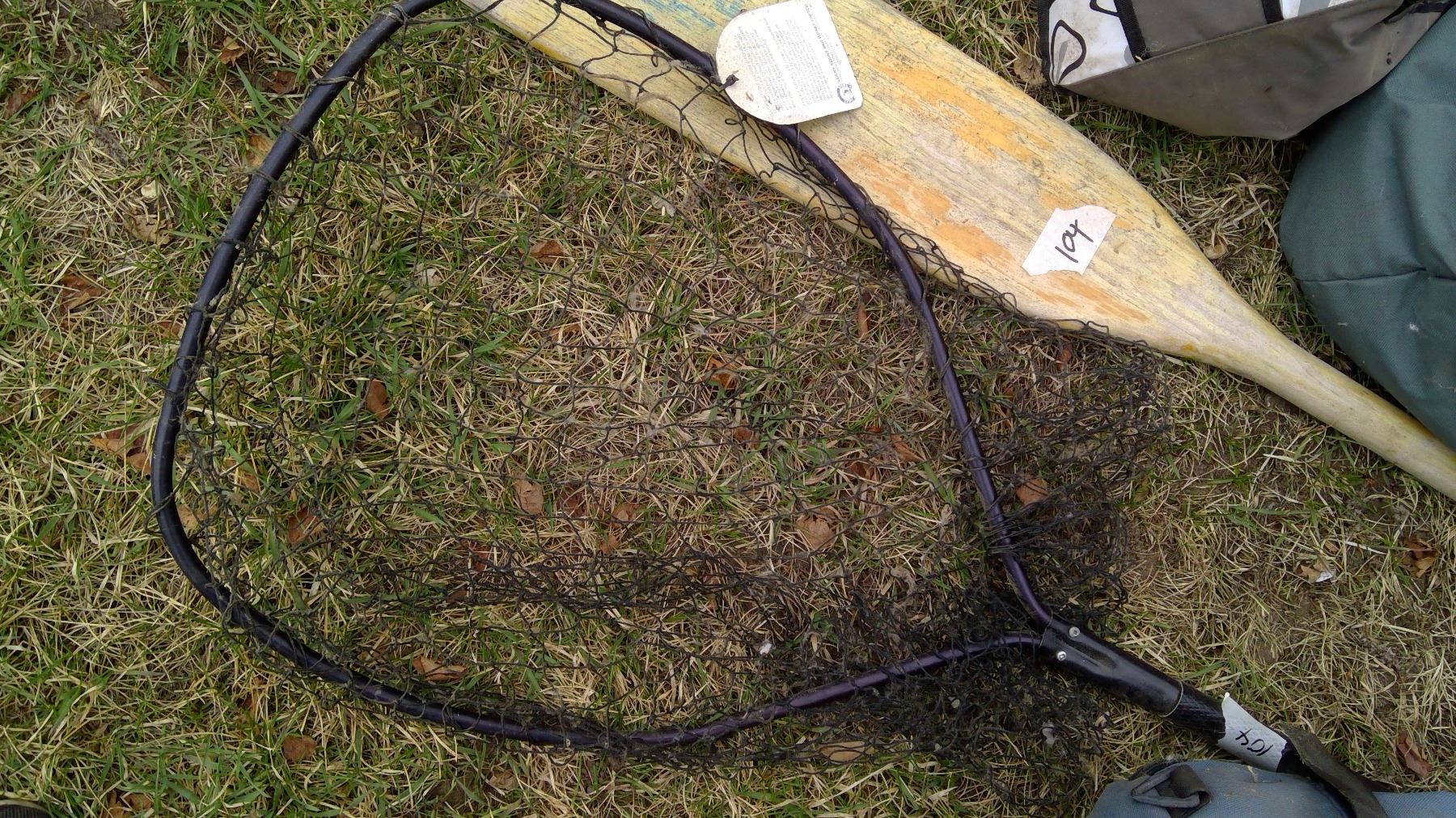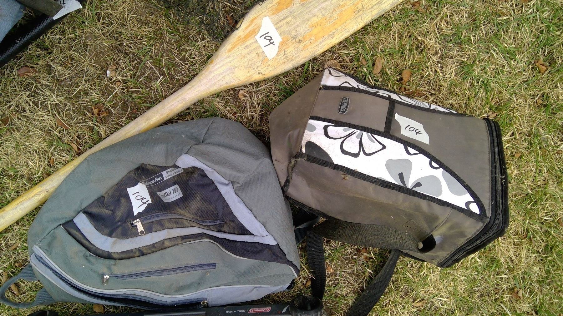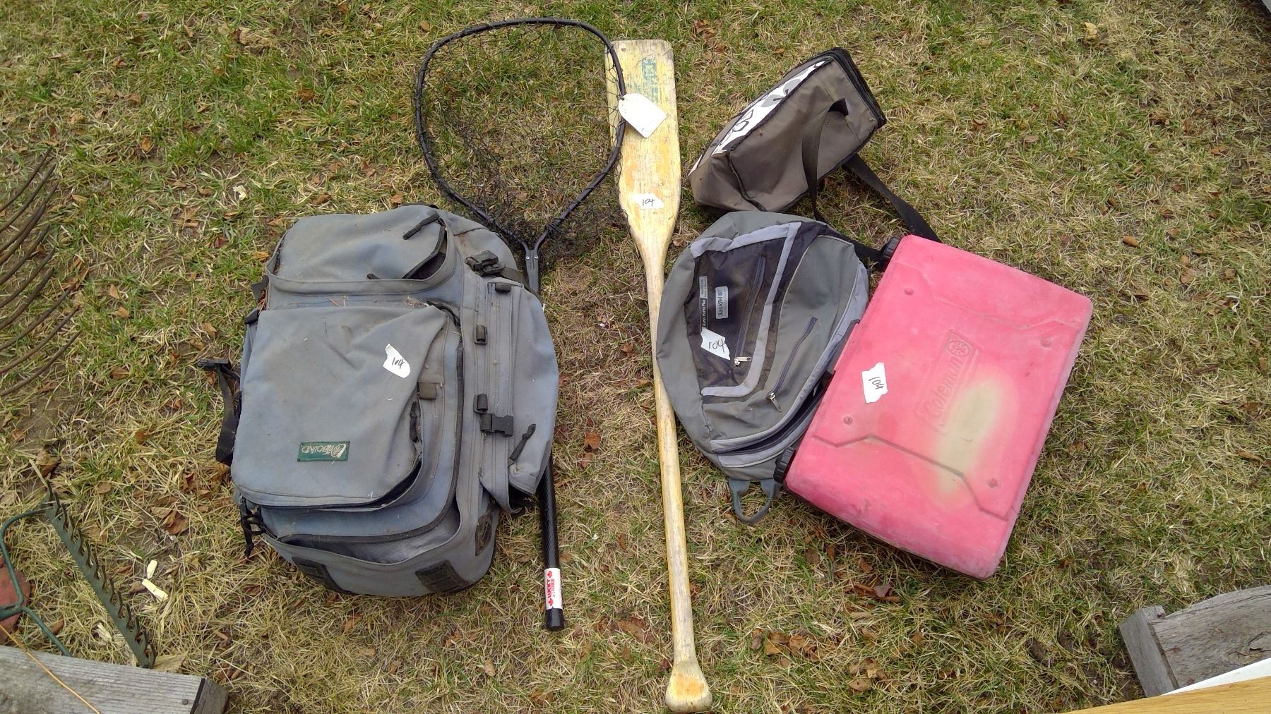 Oar and Fishing Net, Coleman Stove, Tent in Backpack
