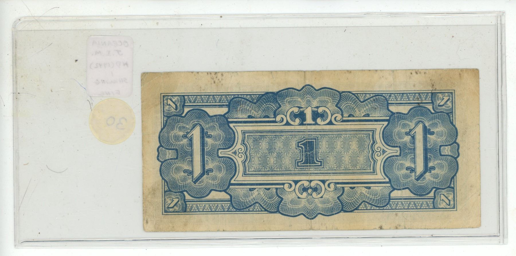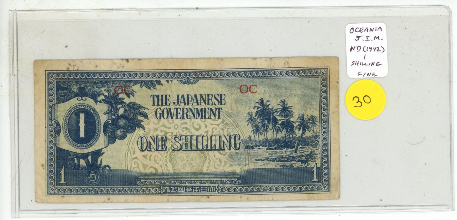 Oceania. Japanese Invasion Money. ND (1942) 1 Shilling. Issued by the Japanese military during their occupation of many Pacific Islands. Fine.