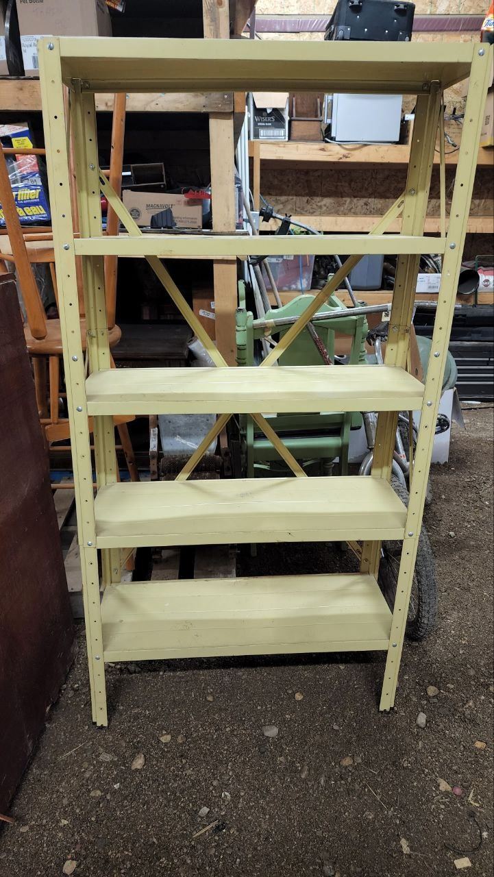 Off Yellow Metal Shelf H-4ft 9" W-2ft 6" D-11 1/2"