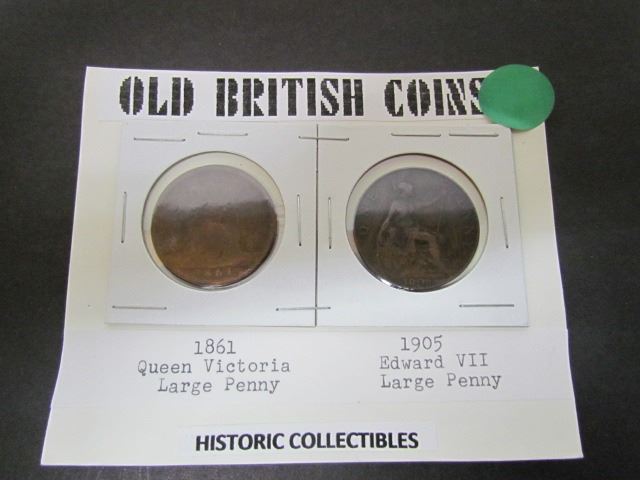 Old British Large Pennies -1861 Queen Victoria and 1905 King Edward VII