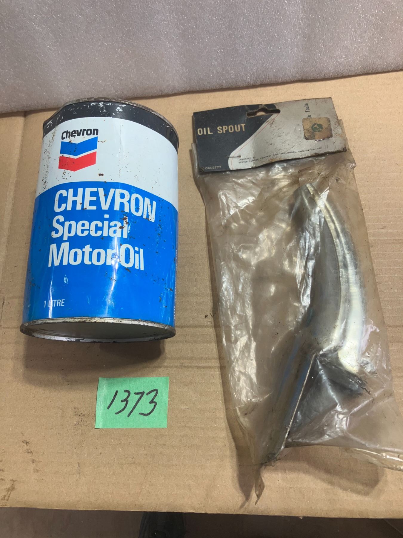 Old Cevron Oil Can (full) & Spout