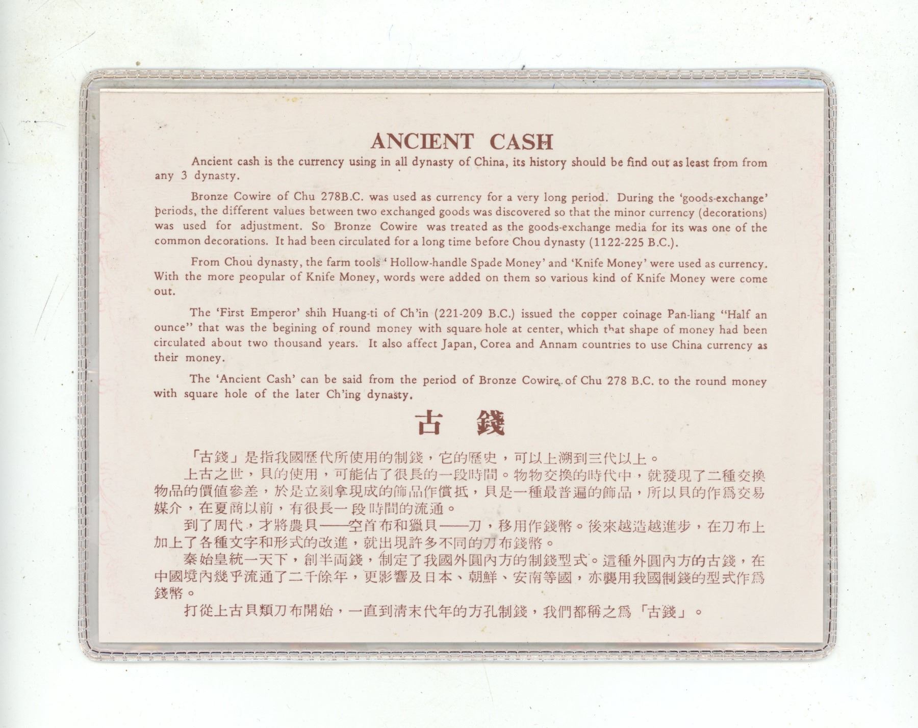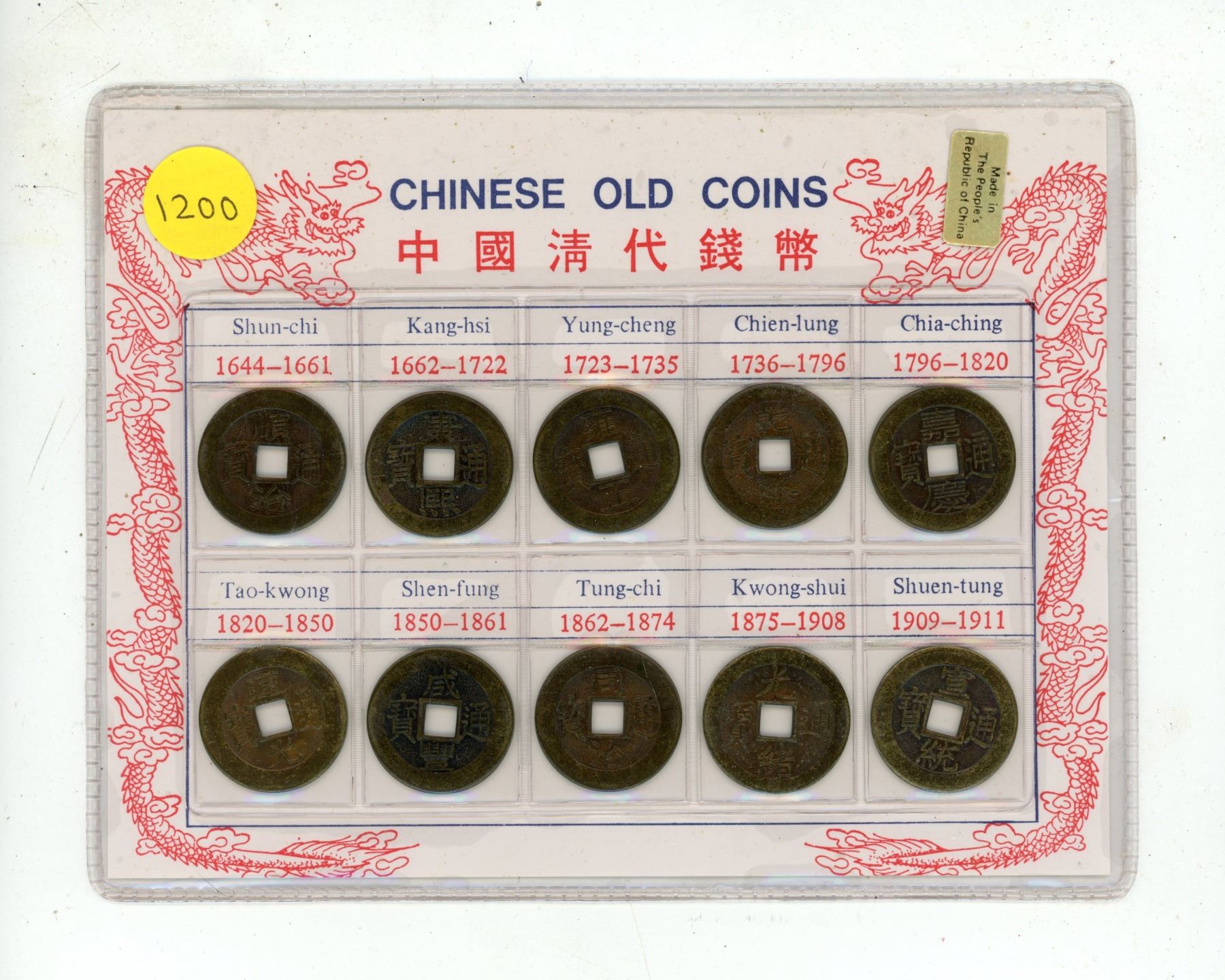 Old Chinese Cash Coins dating from 1644 to 1911. 10 different.