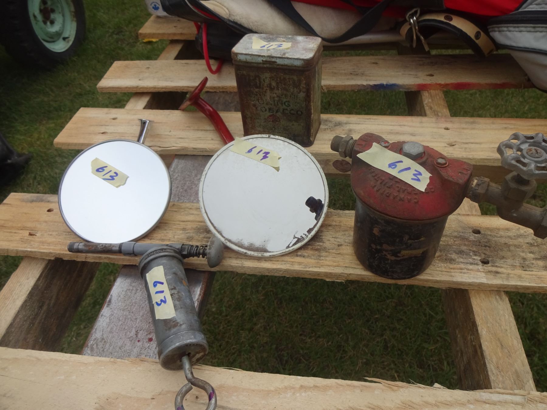 Old Chum Tobacco Tin, Mirrors, Old Greas Gun, Filter